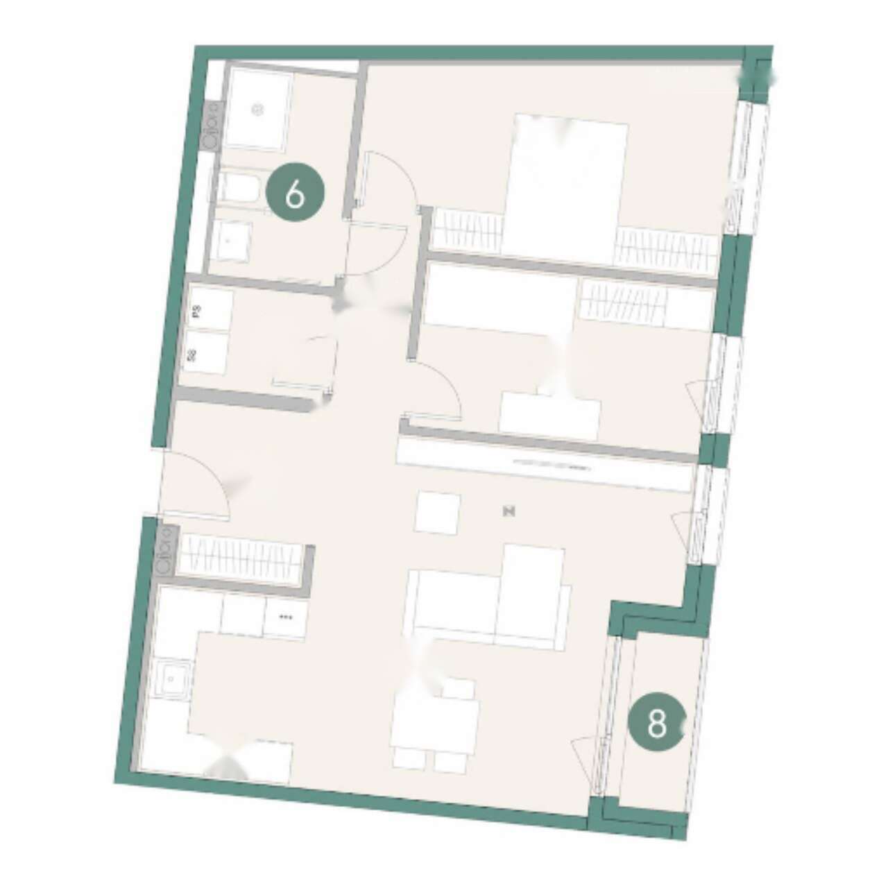 В Резиденции два подъезда, оснащенные лифтами, которые обслуживают шесть жилых и два подвальных этажа. Каждой квартире предоставляется минимум одно место в подземном гараже, уже включенное в стоимость. Квартиры, соответствующие классу энергоэффективности A2-B1, оснащены современными системами, включая напольное отопление, кондиционирование, вентиляцию с рекуперацией воздуха, а также электрические жалюзи.