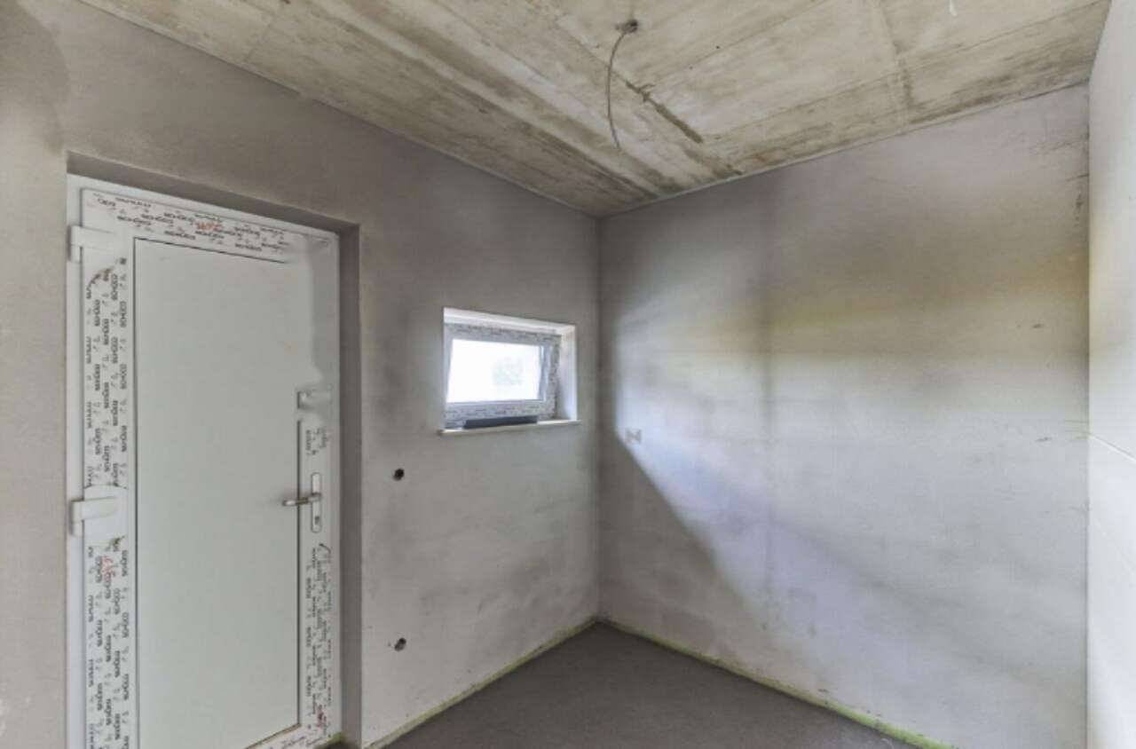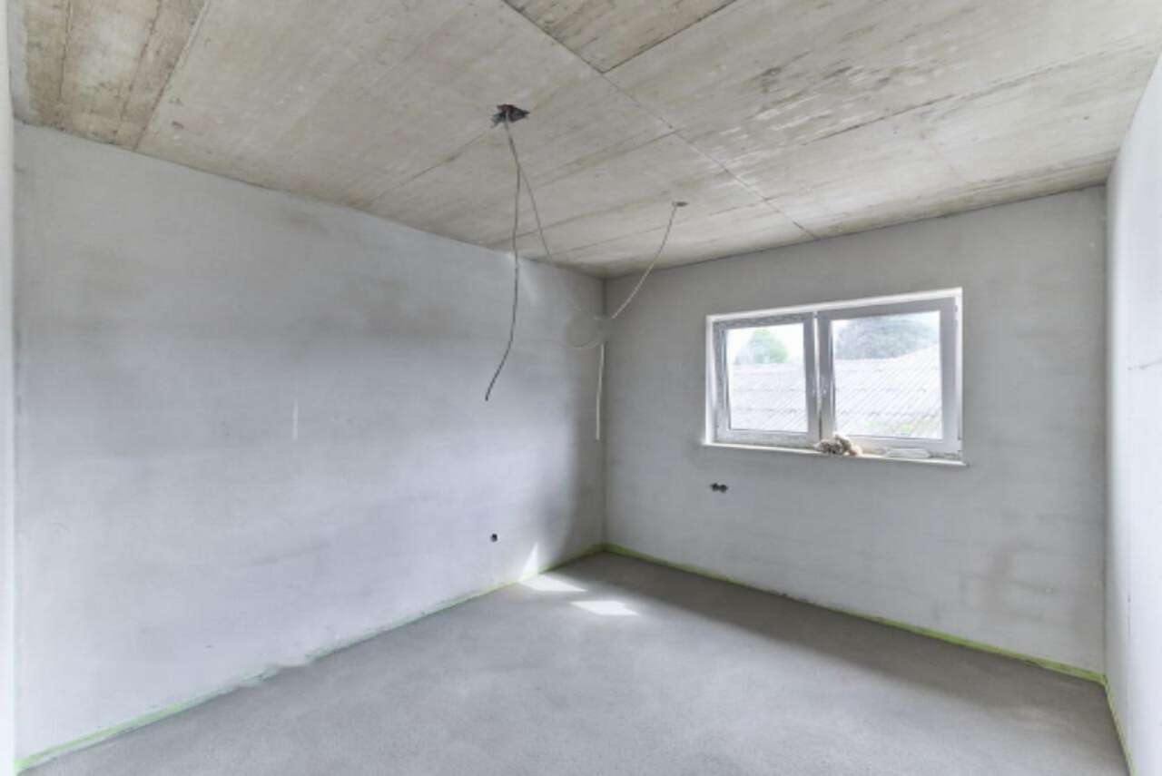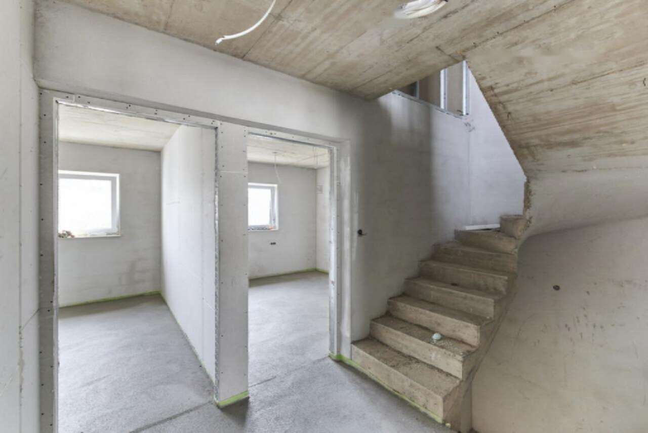 Дом спроектирован на трех уровнях, с брутто-площадью жилого пространства 172,75 м². Он построен по современным стандартам с использованием энергосберегающих технологий, включая тепловой насос, системы охлаждения и теплые полы. Строительные работы практически завершены: установлены внутренние перегородки, системы электроснабжения и инженерии, произведена штукатурка стен и заливка бетонных полов. Осталось лишь завершить отделку на свой вкус: укладка керамической плитки и паркета, обустройство переднего двора и установка навеса.