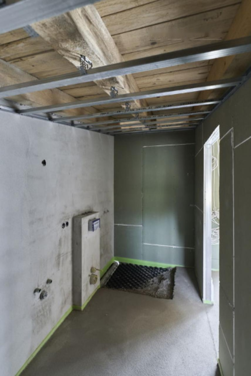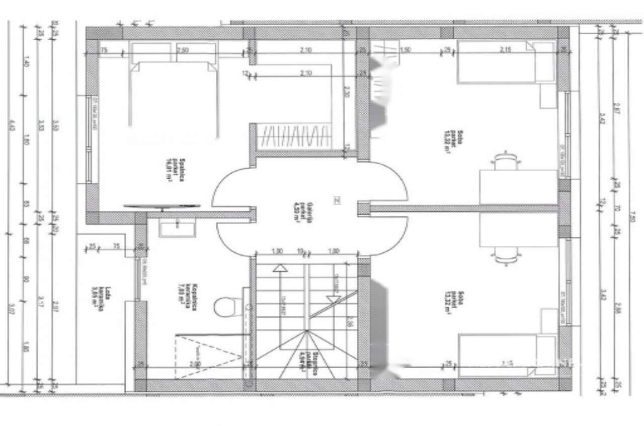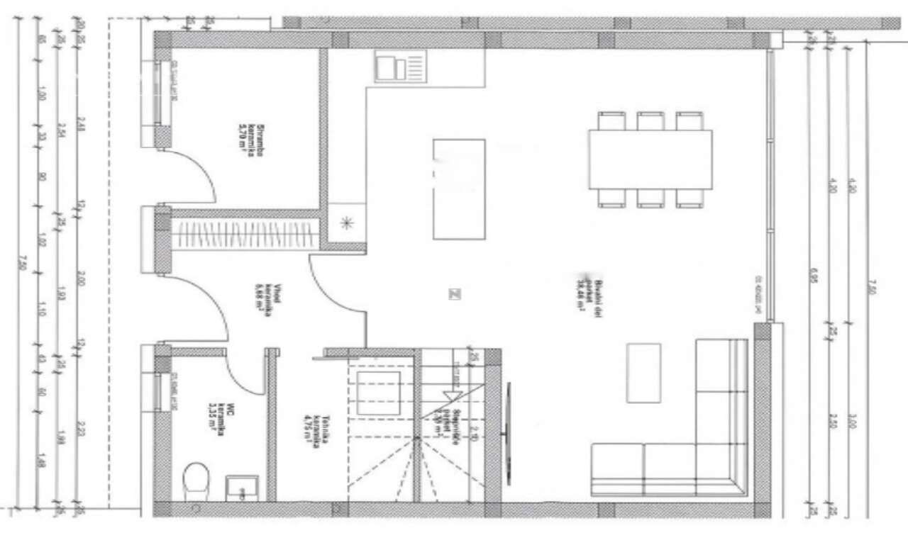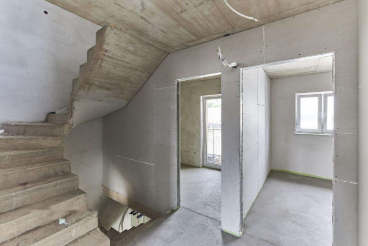 Дом спроектирован на трех уровнях, с брутто-площадью жилого пространства 172,75 м². Он построен по современным стандартам с использованием энергосберегающих технологий, включая тепловой насос, системы охлаждения и теплые полы. Строительные работы практически завершены: установлены внутренние перегородки, системы электроснабжения и инженерии, произведена штукатурка стен и заливка бетонных полов. Осталось лишь завершить отделку на свой вкус: укладка керамической плитки и паркета, обустройство переднего двора и установка навеса.