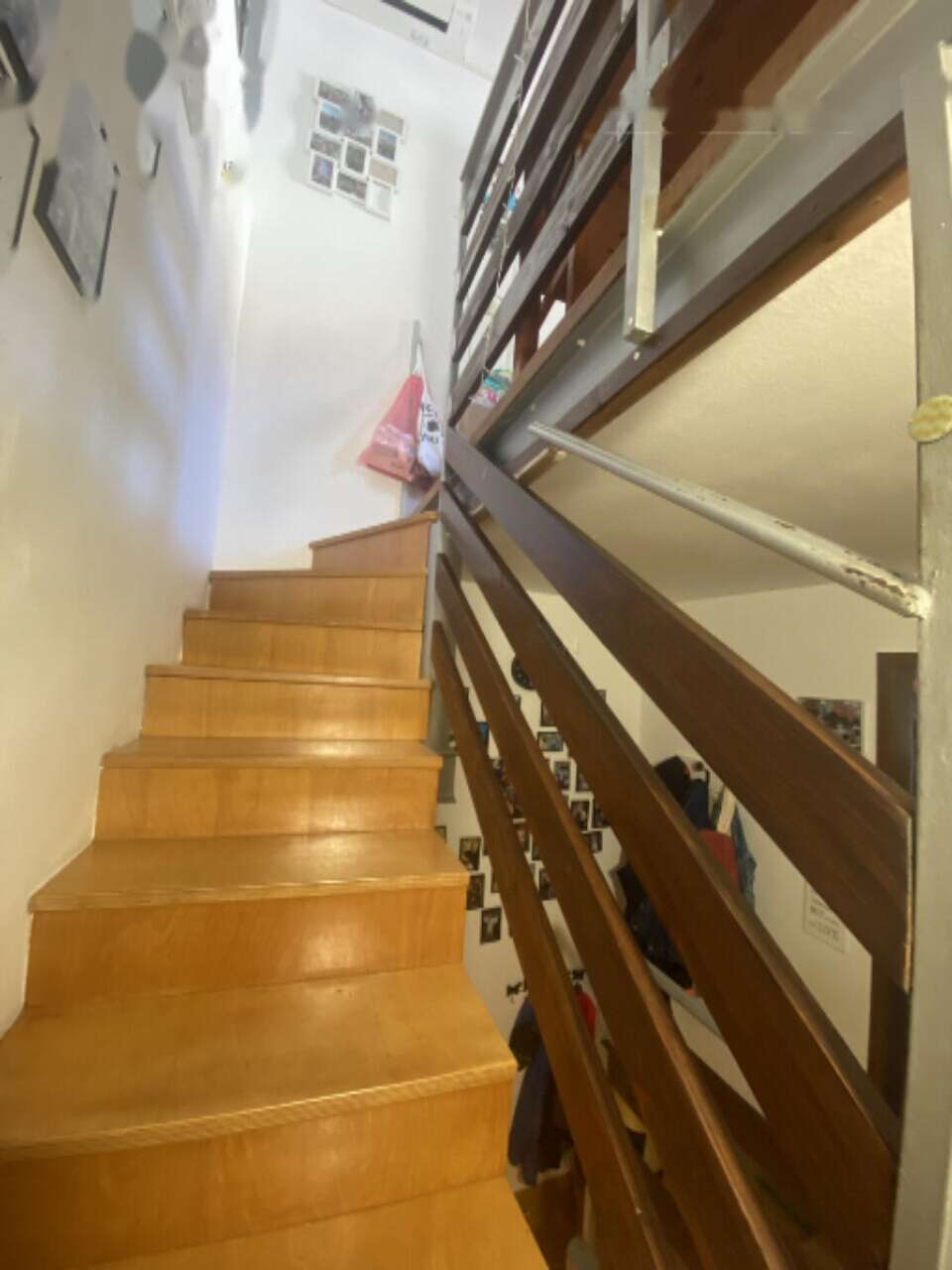 Жильё занимает два уровня: на одном расположены две спальни и ванная комната, а на другом — просторная гостиная, объединённая с кухней и столовой. Сквозь окна открывается захватывающий вид на площадь Тартини.