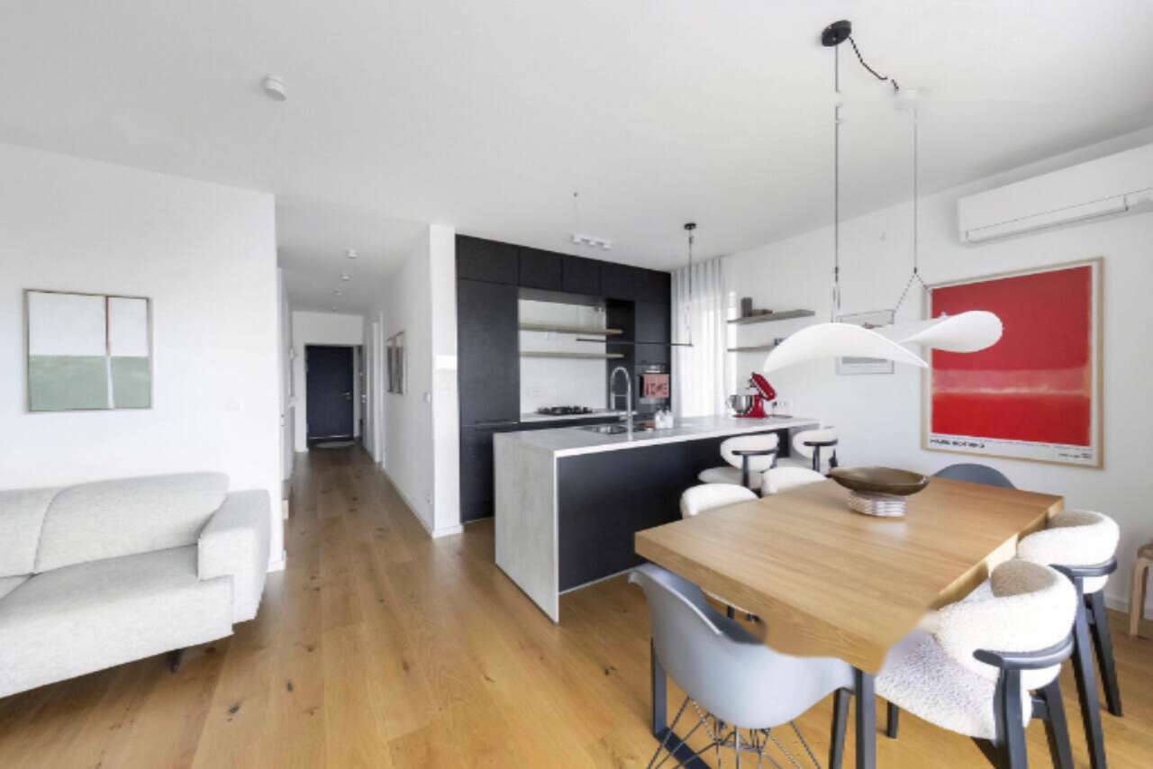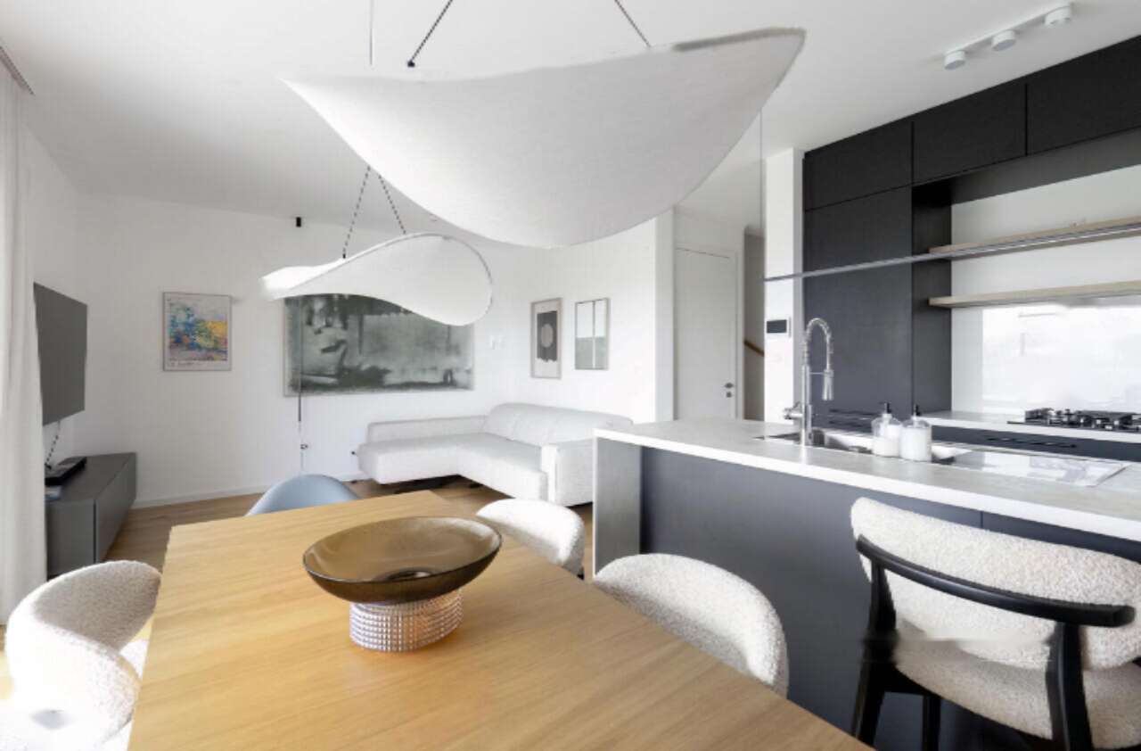 В укромном и современном районе Залога, недалеко от Любляны, возвышается необыкновенный дом, где архитектурная изысканность встречается с природной красотой и эстетической гармонией. Этот элегантный современный дуплекс, заселившийся в изысканном квартале домов на две квартиры, вдохновляет своим уникальным стилем. Завершённый в 2023 году, он выделяется высококачественными материалами и ультрасовременной отделкой.