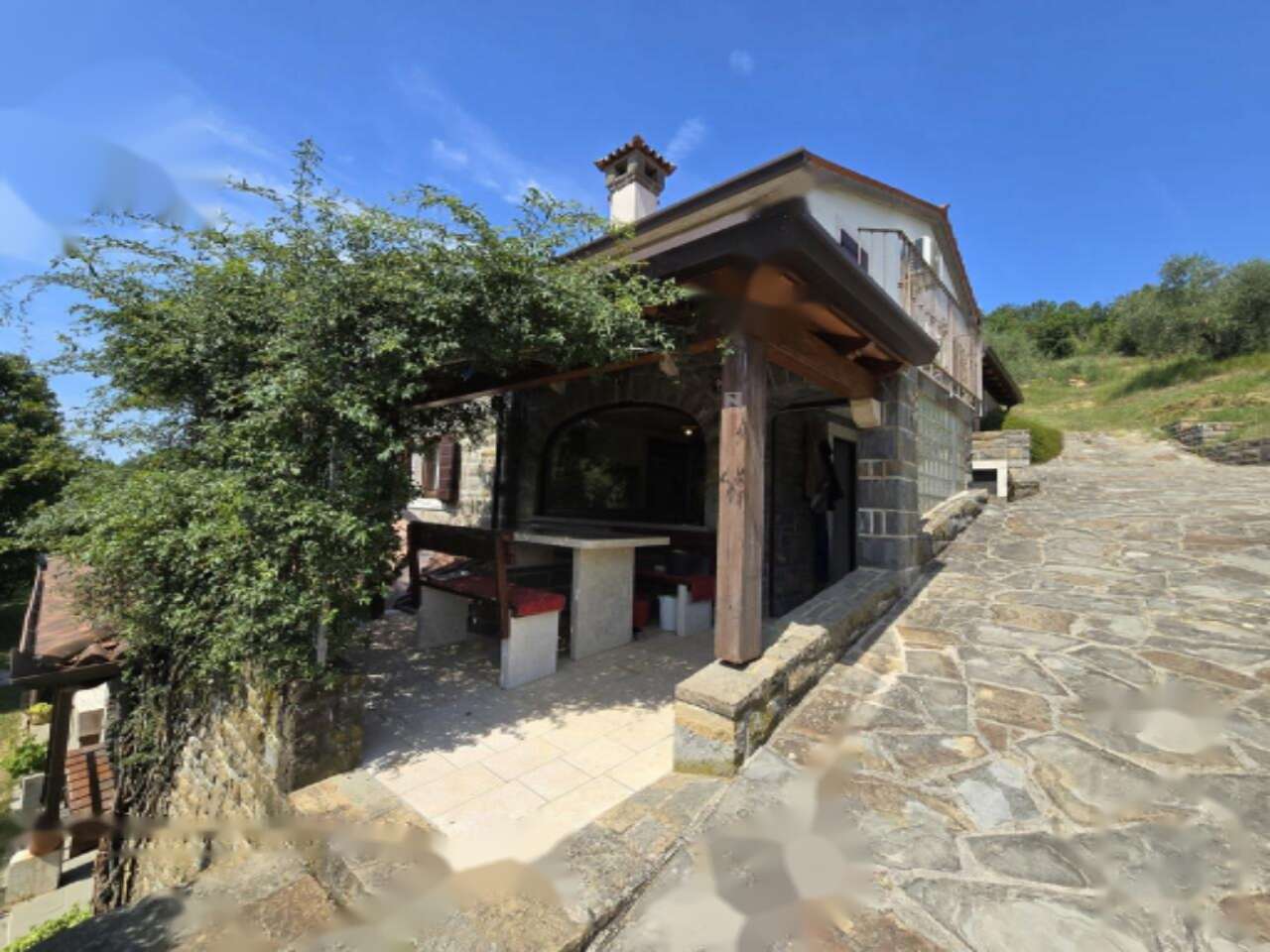 Дом находится на расстоянии 15 км от Копера и 18 км от Порторожа, что делает его привлекательным вариантом для тех, кто ценит тишину и уединение вдали от городской жизни. Перед домом расположена обширная зелёная зона с наружным душем, а рядом — вместительный гараж для двух автомобилей и прочих принадлежностей.