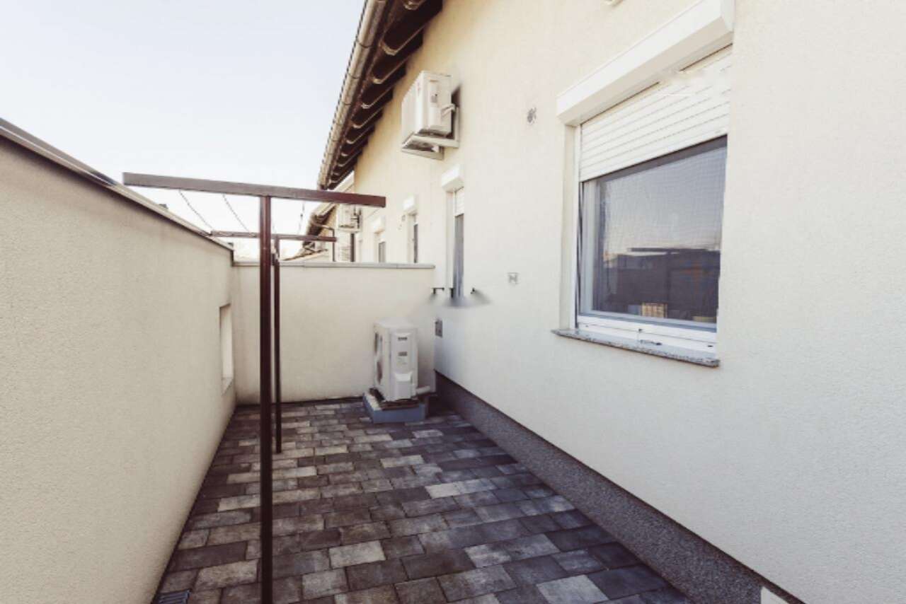На первом уровне разместились прихожая, ванная, кухня и столовая, а также гостиная, из которой можно выйти на ухоженный дворик. Здесь же находятся кладовка под лестницей и техническое помещение с подготовленной системой для газового отопления. Второй этаж предлагает две спальни, главную спальню и еще одну ванную. Повышенная звукоизоляция обеспечивается противошумовыми дверями марки LipBled.
