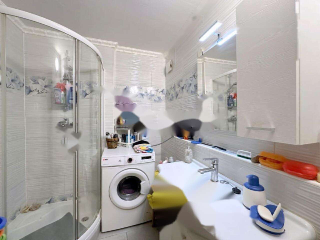 Квартира частично обновлена и имеет продуманную планировку. Включает прихожую с гардеробной, две детских комнаты, совмещенную гостиную и столовую с выходом на балкон, отдельную кухонную зону, просторную спальню, которую при желании можно использовать в качестве комнаты для гостей, а также ванную комнату и отдельный туалет. Восточно-западная ориентация квартиры гарантирует обилие естественного освещения. Средние коммунальные платежи составляют около 220 евро ежемесячно. Для удобства жильцов имеется парковка перед домом, охраняемая шлагбаумом.