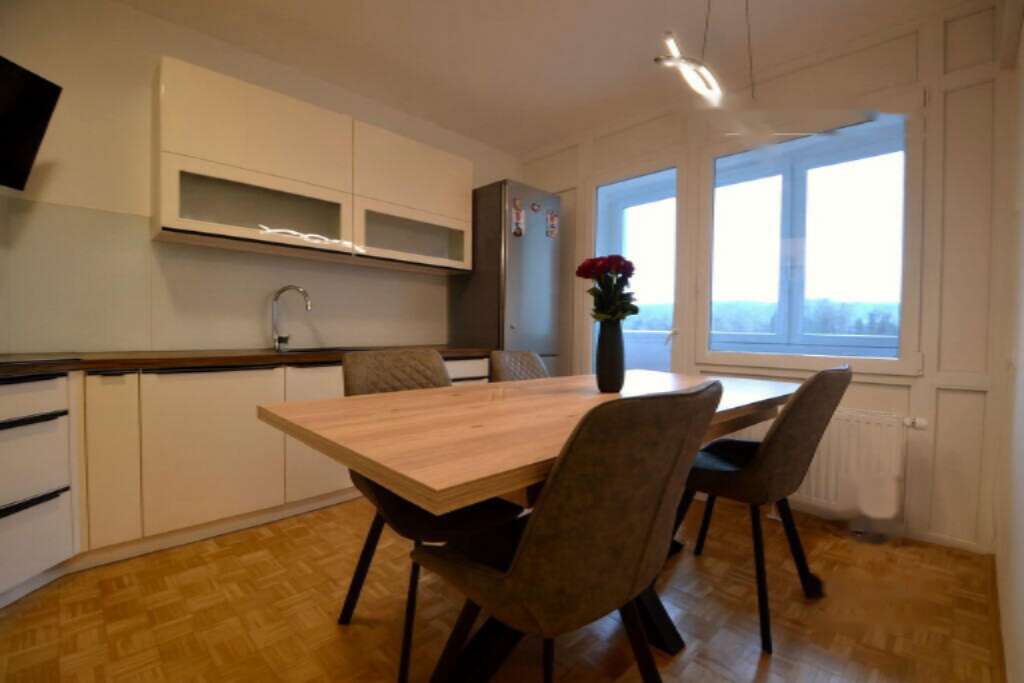 В районе Нове Фужине на площади Преглова предлагается к продаже полностью обновленная однокомнатная квартира. Расположенная на третьем этаже двенадцатиэтажного дома, который был возведен в 1985 и успешно реконструирован в 2022 году, квартира площадью 44,6 м² удачно сочетает в себе современность и комфорт.