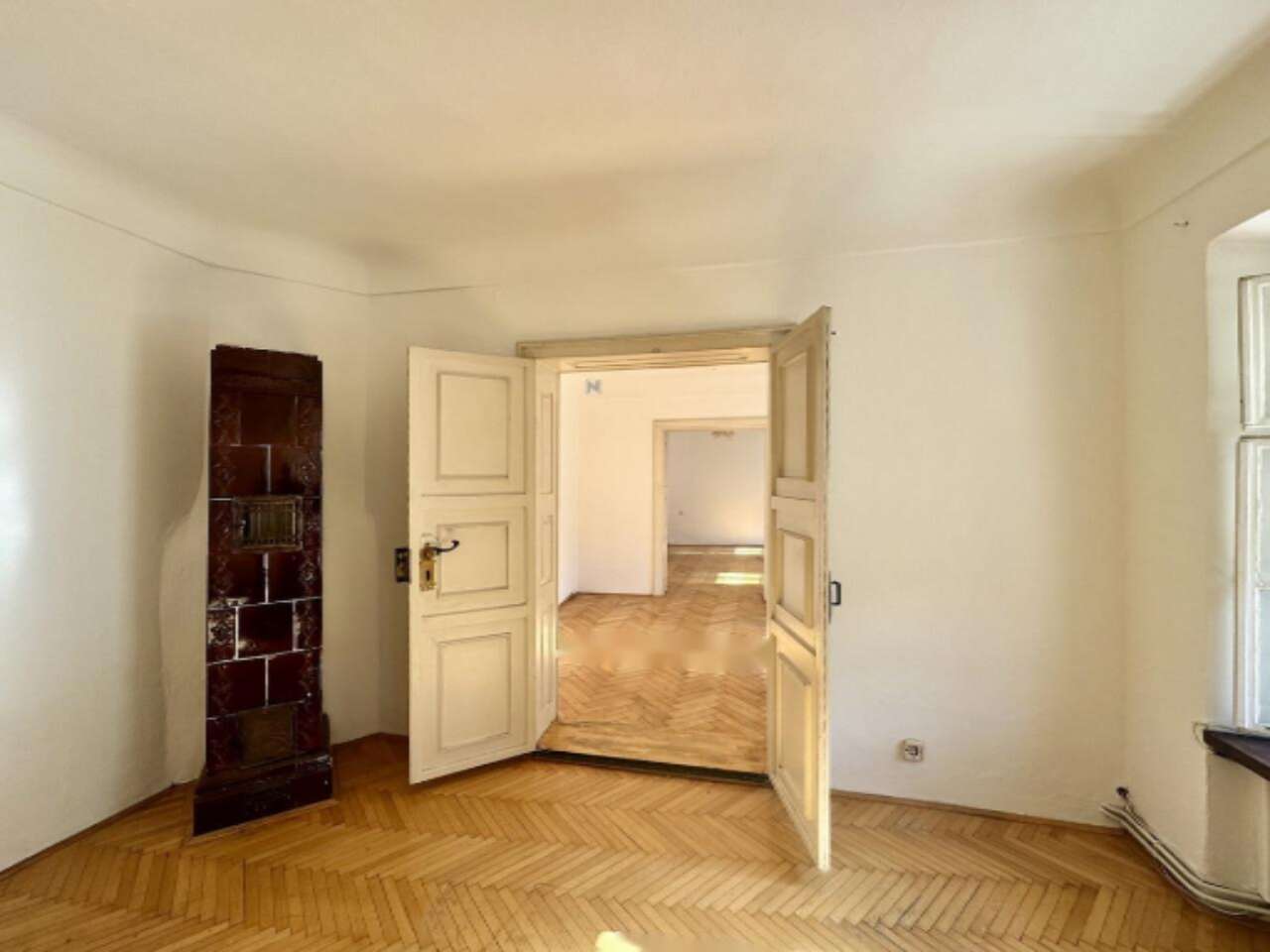 Общая площадь недвижимости составляет 137 м², включая террасу и кладовую. В жилой зоне размером 80,3 м² располагаются три комнаты, спальня, кухня и санузел. Просторная терраса на 50 м² предлагает спокойствие и укромность — настоящая редкость для старой части города. Кладовая площадью 6,4 м² находится на том же уровне, что и квартира.