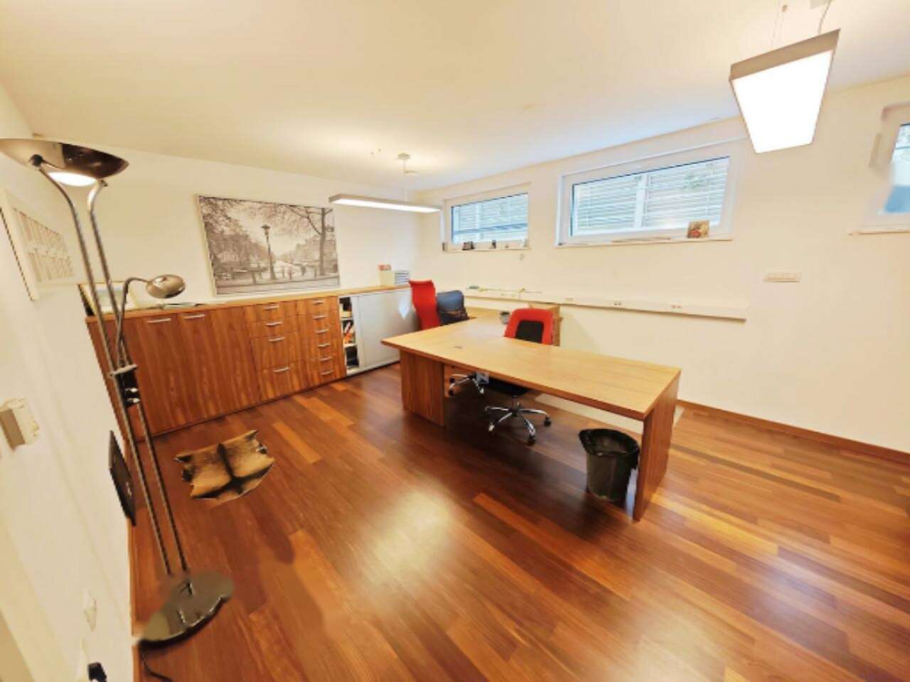 Планировка дома обеспечивает разделение зон для различных задач и нужд. В просторном подвале размещены винный погреб, офис, спортивный зал и хозяйственное помещение. На первом этаже находятся котельная, гараж и выход в красивый сад с фруктовыми деревьями и овощной грядкой. Основная гостевая зона включает богато обставленную гостиную с кухней и панорамными окнами, ведущими на обширную террасу.