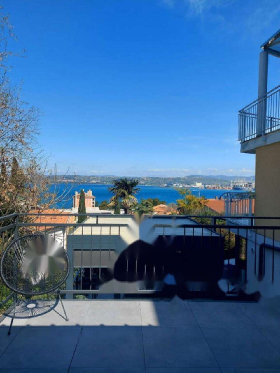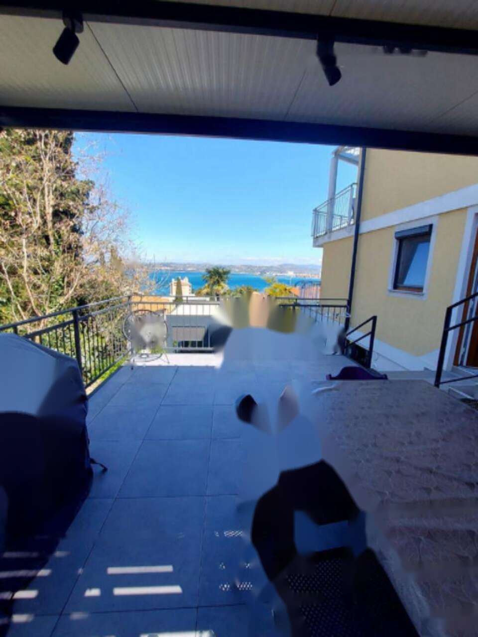 - Частично крытая терраса и сад с видом на море