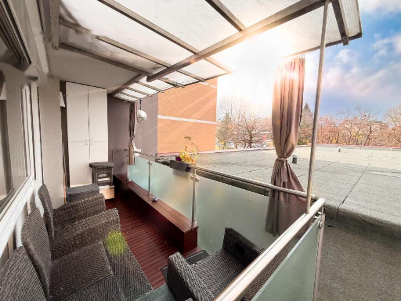 - Балкон, ориентированный на запад, для уютных вечерних посиделок