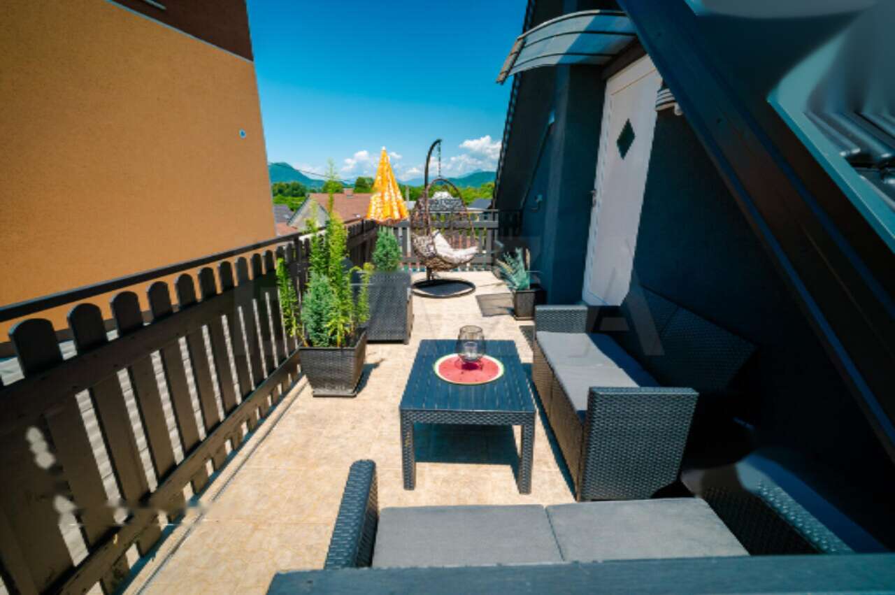Квартира имеет площадь 57,10 м², из которых 29,50 м² отведены под жилое пространство. Внутренняя планировка включает стильную гостиную с кухонной зоной, просторную спальню, мансардную ванную комнату и кладовую площадью 8,60 м². Из гостиной можно выйти на уютную террасу в 19,00 м² с прекрасным видом на гору Шмарна. В дополнение к квартире идут садовый участок и два собственных парковочных места.