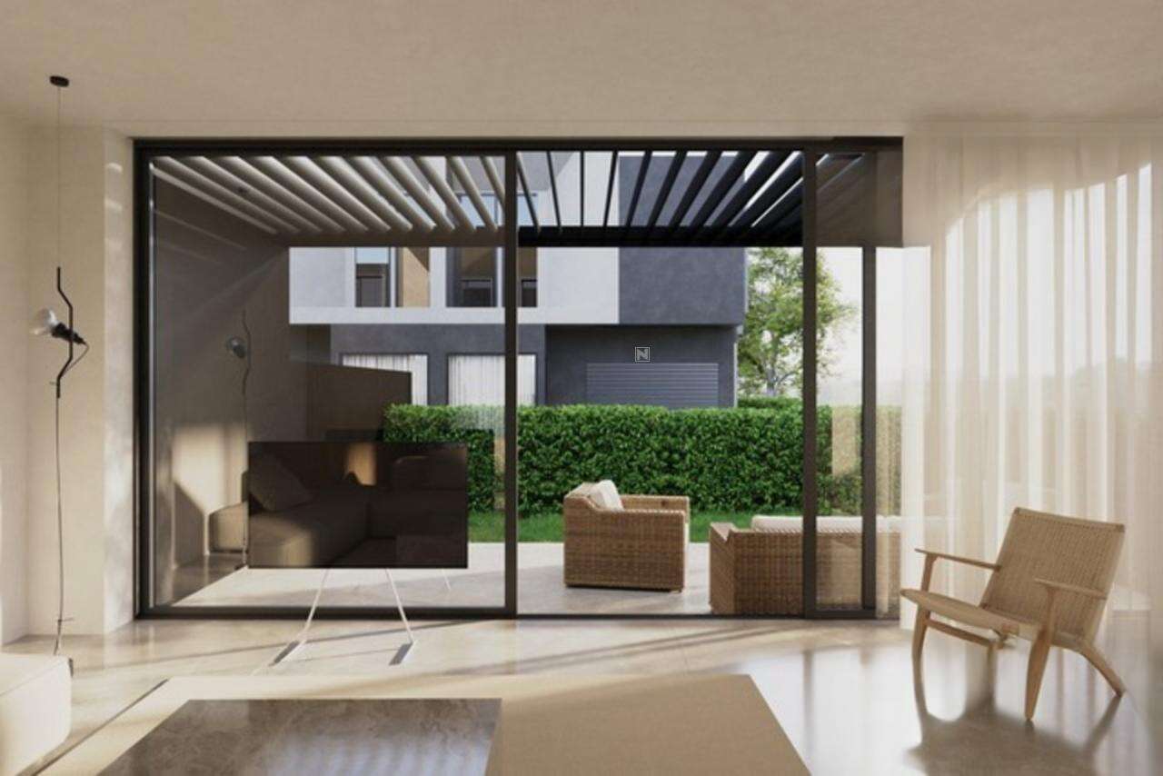 Жилые комнаты спроектированы с юго-западной стороны, что способствует отличному естественному освещению через большие окна. Вокруг дома разбит ухоженный сад с травянистыми участками и кустарниками, установлена система полива. Также имеется крытая терраса с биоклиматической перголой и современная плитка на регулируемых основаниях.