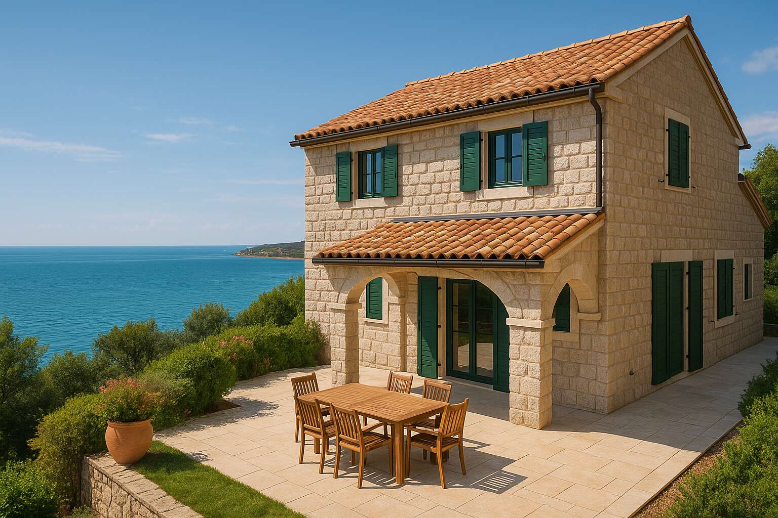 Выгодное расположение: всего в 1 км от морского побережья. Это место предоставляет все условия для комфорта — есть гараж, обширная терраса и благоустроенный сад. Энергоэффективность согласно статье 31 ZURE в данном случае не требуется.