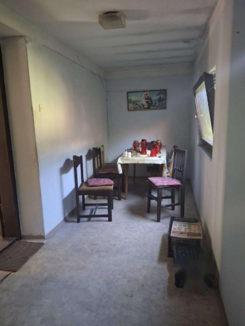Дом включает просторный коридор, ванную комнату, кухню с обеденной зоной, спальню, кладовую и три дополнительные комнаты. В непосредственной близости от дома находится хозяйственное строение площадью 40 м², в котором оборудованы винный погреб и мастерская. На участке также располагается обширный навес и дровяник. В дополнение, имеется отдельный земельный участок площадью 785 м², из которого 505 м² предназначены под застройку, а оставшиеся 280 м² — это сельскохозяйственные угодья. Сад, фруктовый участок и виноградники огорожены.