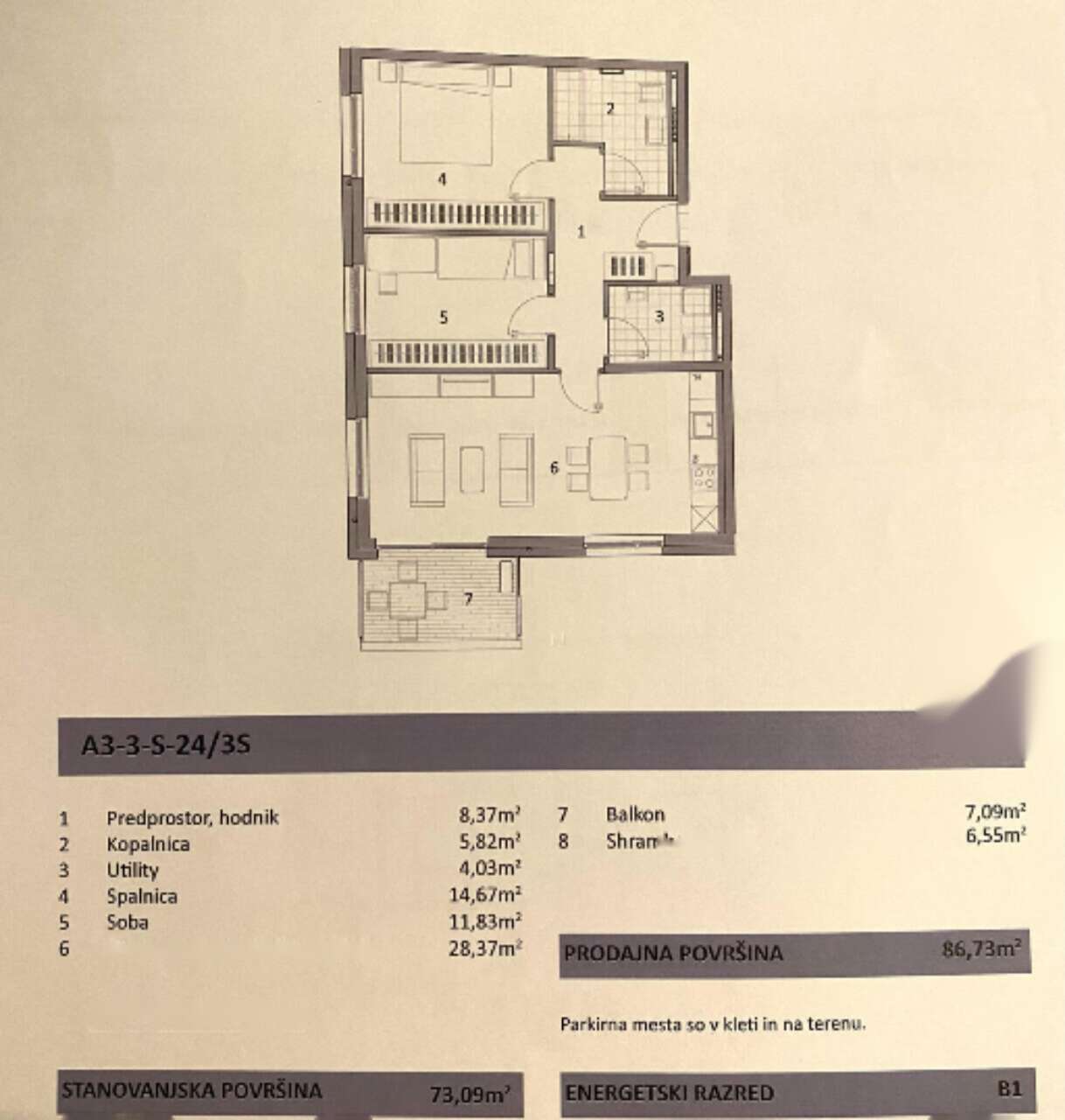 Предлагается к продаже просторная трехкомнатная квартира площадью 86,73 м², расположенная на третьем уровне четырехэтажного дома в тихом уголке района Чрнуче в столице Словении, Любляне. Здание, сооруженное в 2018 году, гармонично сочетает современные архитектурные решения и удобства для комфортного проживания.