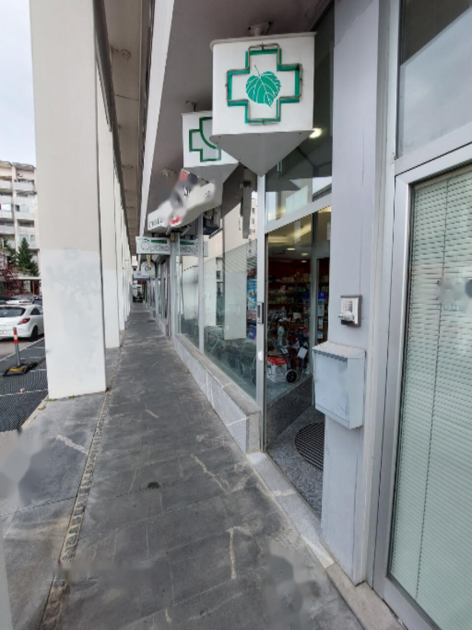 Архитектура здания включает выразительные витринные окна на первом этаже, обеспечивая отличную видимость и легкий доступ. Это идеально подходит для торговой деятельности или специализированного бизнеса, например, продажи медицинских товаров.