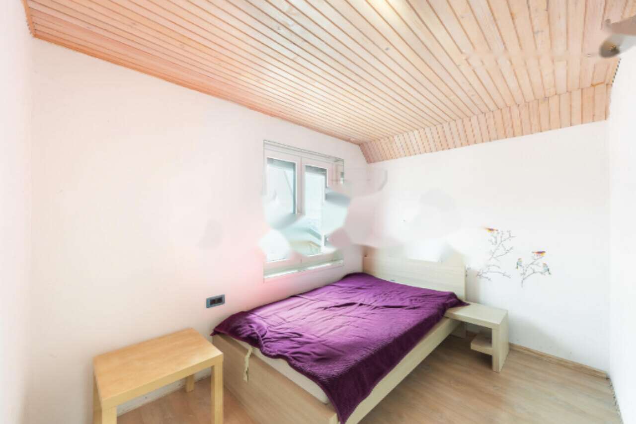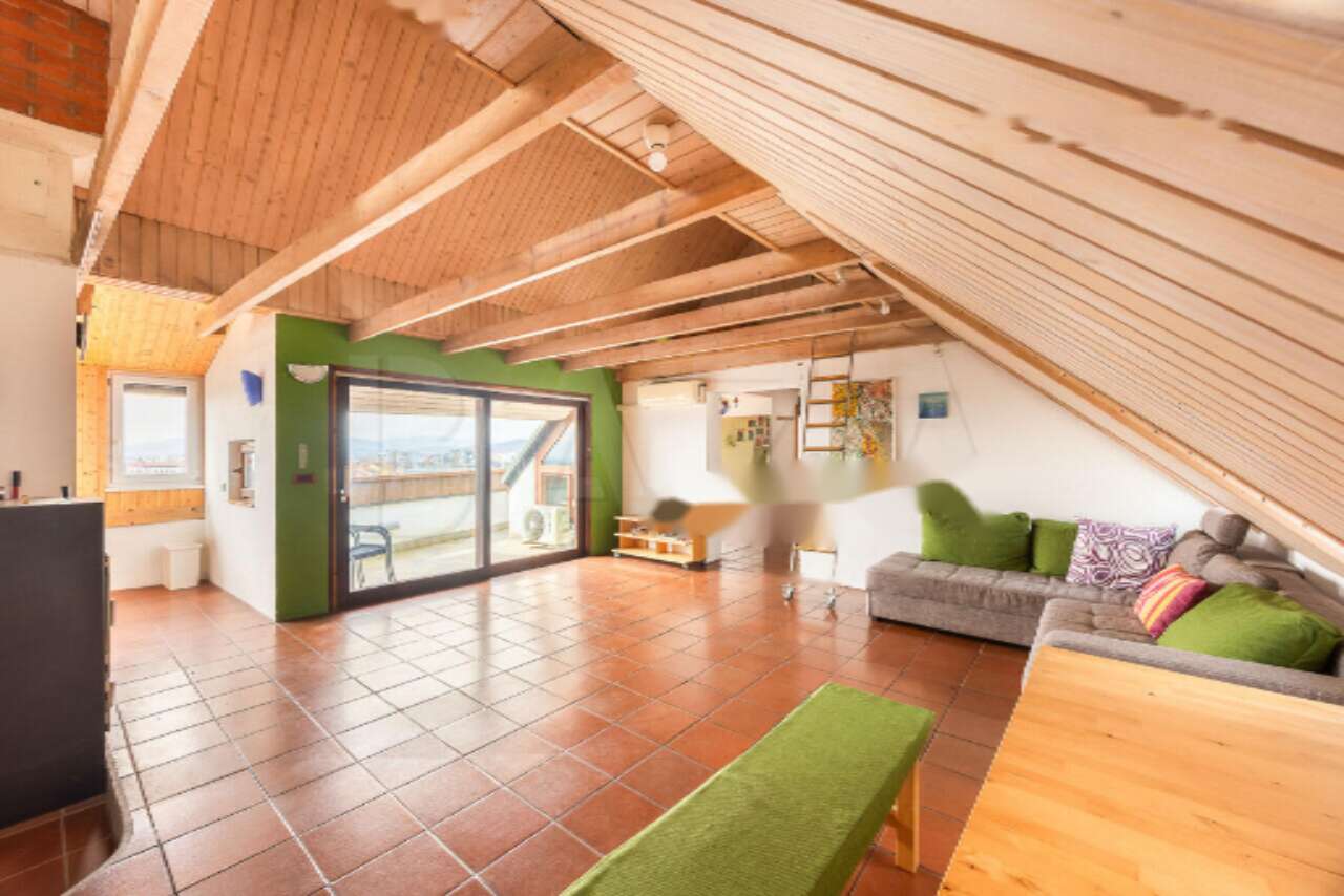 На площади в 132 м² раскинулась просторная квартира, занимающая весь верхний этаж с окнами, выходящими на все стороны горизонта, открывающая прекрасные виды на Любляну. Планировка включает лестницу с прихожей, рабочий кабинет, удобную главную спальню с ванной, две детские комнаты, также с ванной, функциональную кухню с кладовой, просторную гостиную с камином и балконом, ориентированным на запад. Над гостиной балконные галереи служат игровой площадкой и потолочной кладовой. Также в распоряжении владельцев подсобное помещение на первом этаже и кладовая в подвале.
