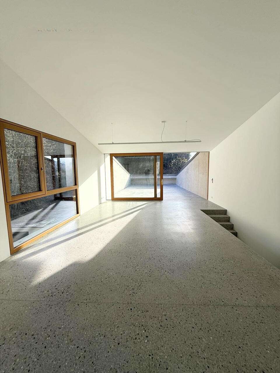 Квартира выделяется высоким качеством отделки: деревянные окна и двери, изготовленные мастерской Кошак из цельной лиственницы, оснащены белыми стеклами Optywhite и электрическими шторами ZIP, пропускающими 5% света. Полы украшены терраццо с двойной защитой, и вся площадь, включая кладовую, снабжена системой теплого пола. Отопление обеспечивает тепловой насос.