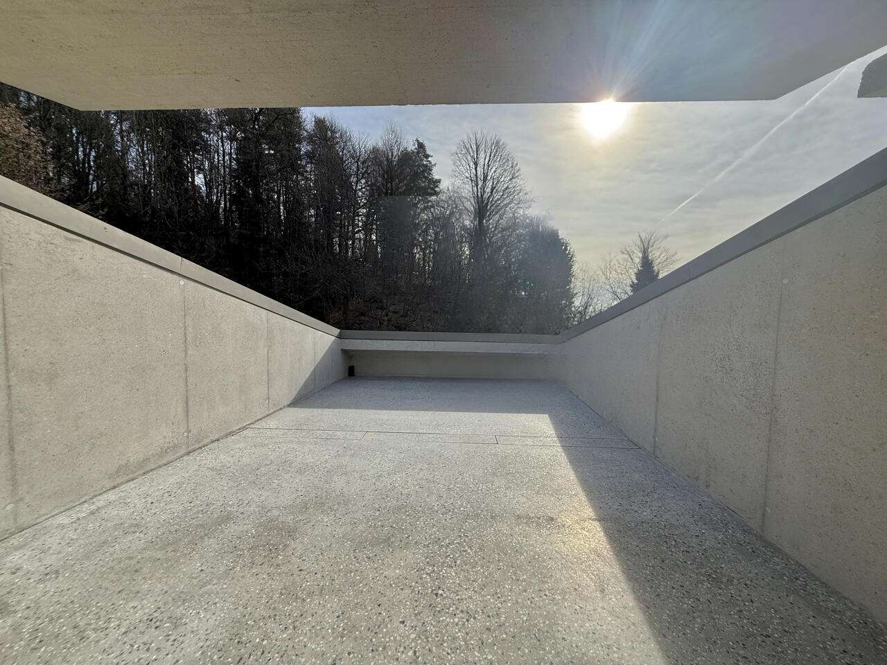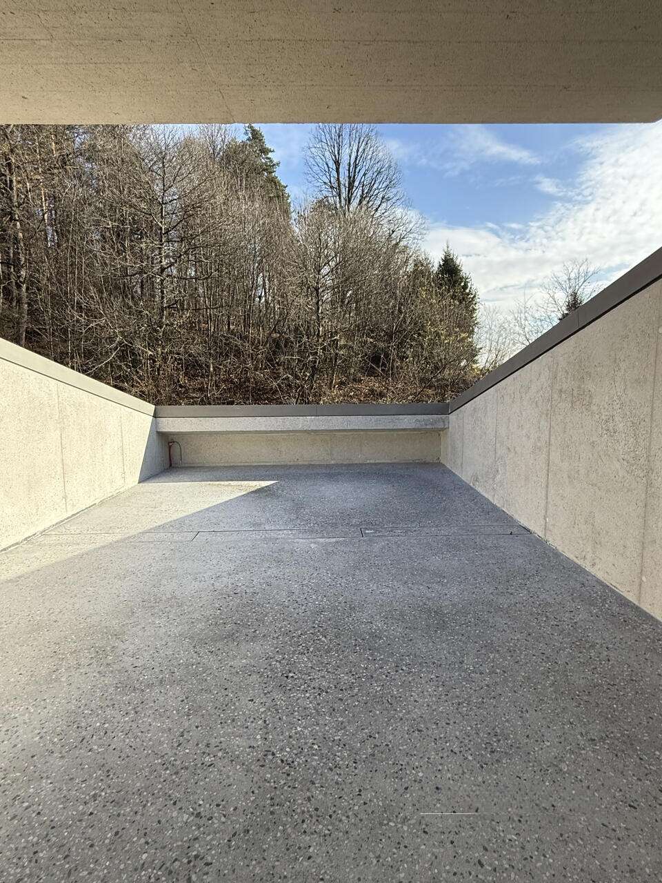 Двери INLINE высотой 260 см монтированы на скрытых петлях без рамок. Также выполнена подготовка для установки зарядной станции для электромобиля. Парковочные места вымощены штучным бетоном.