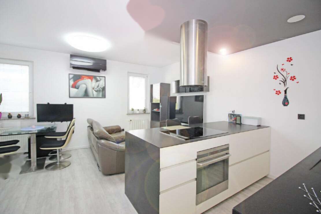 Просторная гостиная с минималистичным декором, телевизионной стеной и кондиционером станет идеальным местом для отдыха и общения. Функциональная современная кухня приглашает к кулинарным экспериментам.