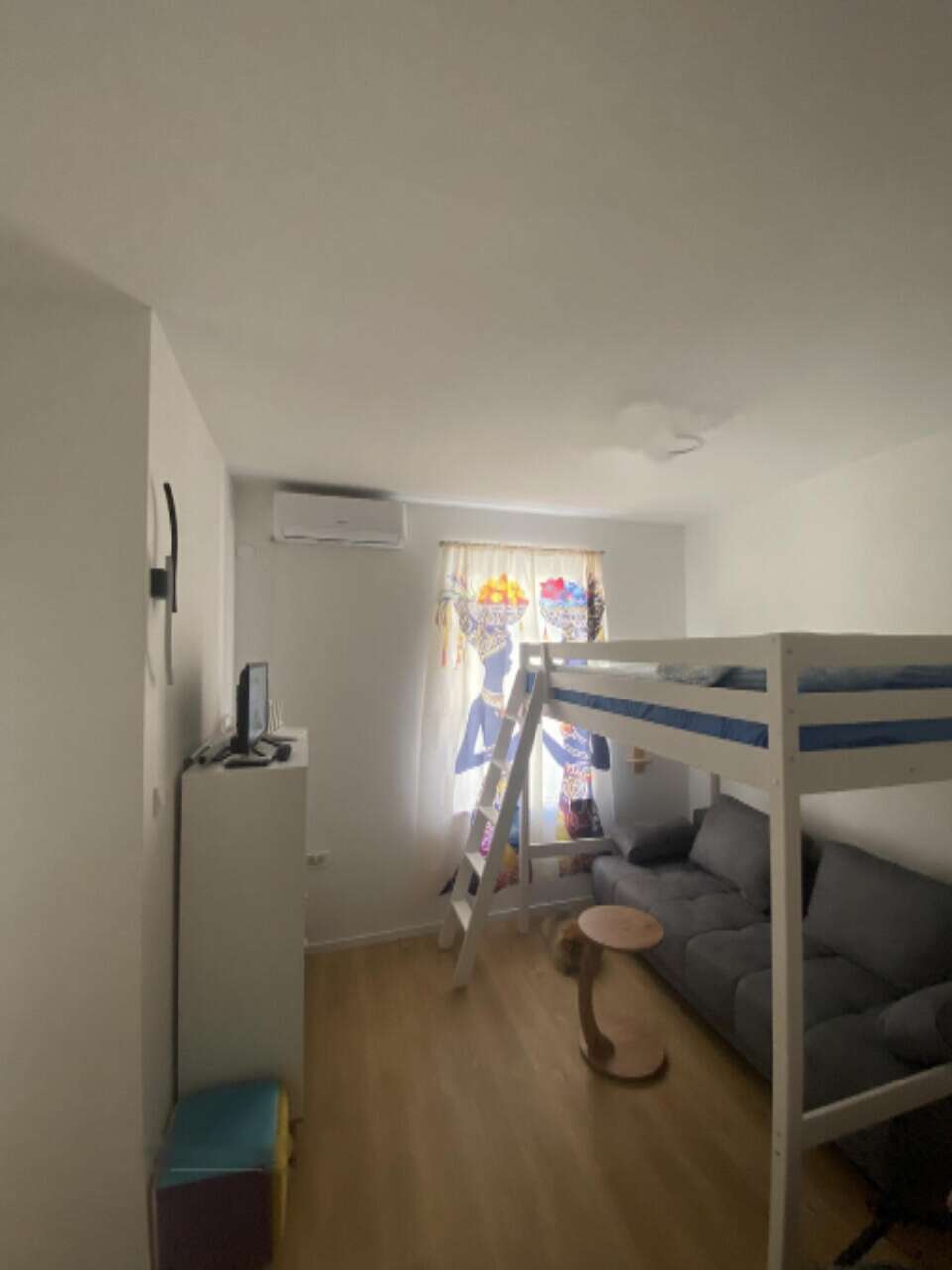 Продаётся полностью меблированной: здесь вы найдёте кухню с варочной панелью и духовым шкафом, вытяжку, холодильник, микроволновую печь, встроенный гардероб, тумбу под телевизор, раскладной диван-кровать и двухъярусную кровать. Всё готово к немедленному заселению, не требуя дополнительных затрат на ремонт или покупку мебели. Обогрев осуществляется посредством кондиционера.