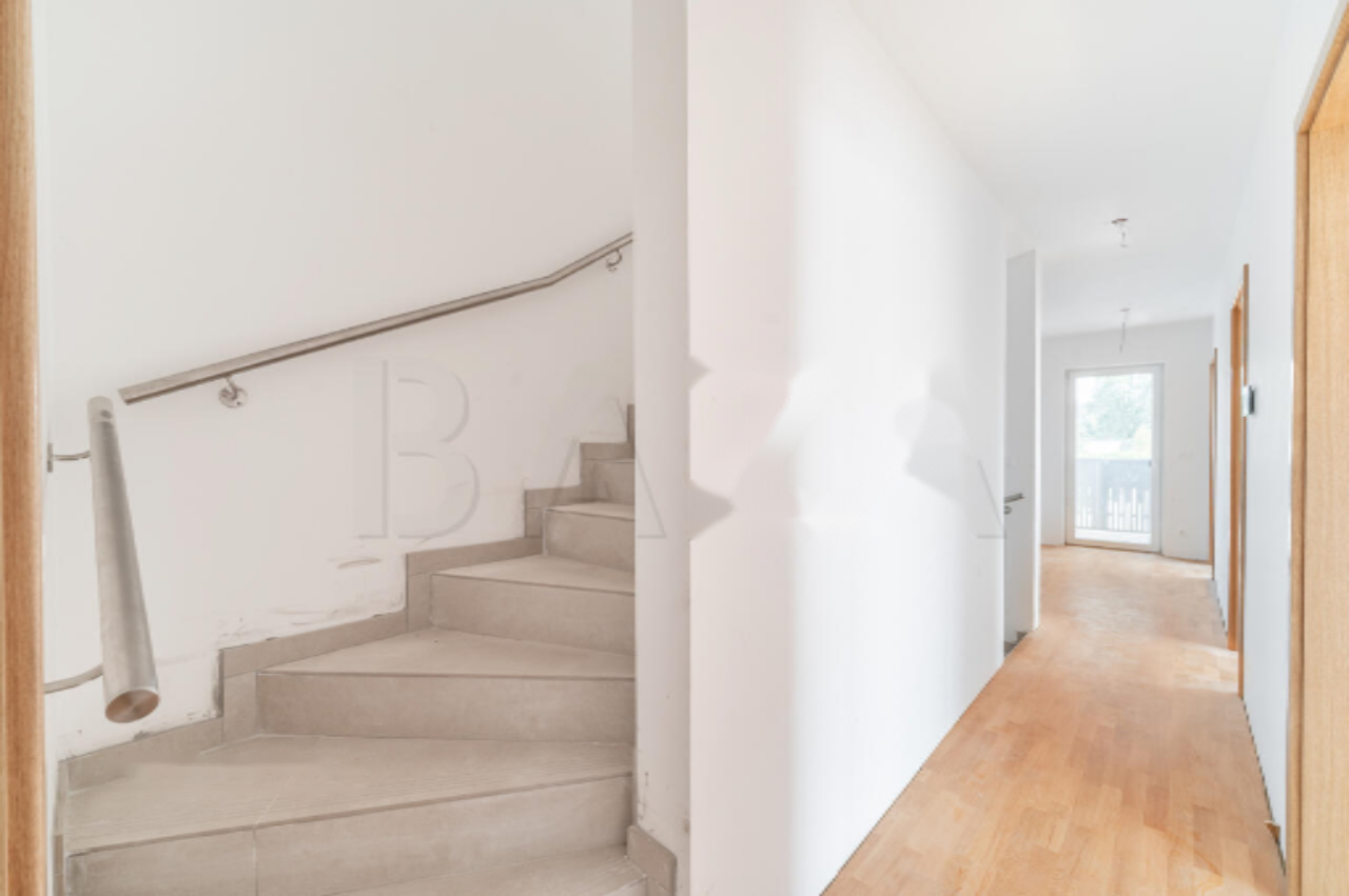 Детализация дома впечатляет: трехслойные окна с электрическими жалюзи, качественные двери, современное сантехническое оборудование, камин в гостиной и газовое отопление полов с возможностью установки теплового насоса. Стены дома сделаны из кирпича, обеспечивая отличную звуковую и тепловую изоляцию. Для автомобилей жильцов предусмотрено три парковочных места, также возможно использование для электромобилей, а для гостей - четыре дополнительных парковки.