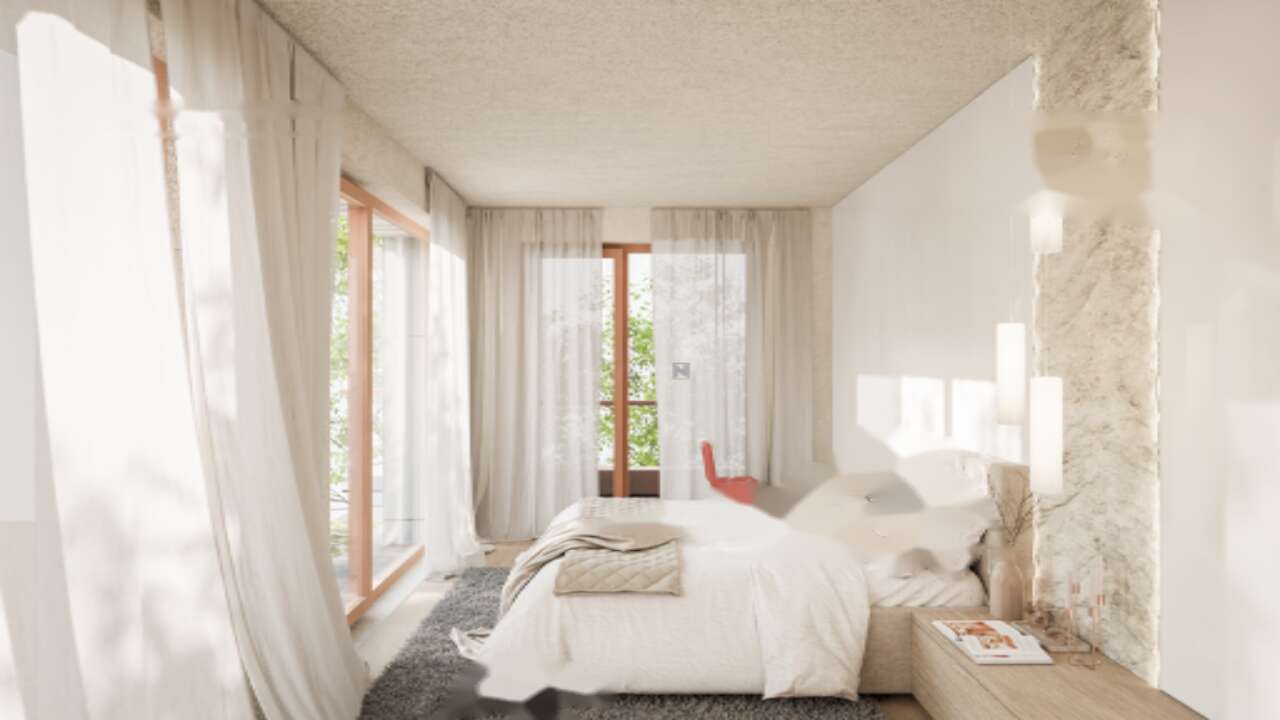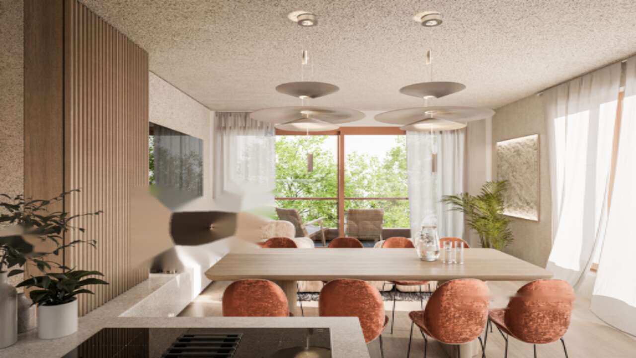 Жилые помещения спроектированы с учетом создания светлых, просторных и проветриваемых комнат. Почти в каждой из них есть выход на внешние территории, откуда можно любоваться окружающей природой и величественными горами. Интеграция зеленых насаждений способствует свежему воздуху и обеспечивает комфортную температуру в районе.
