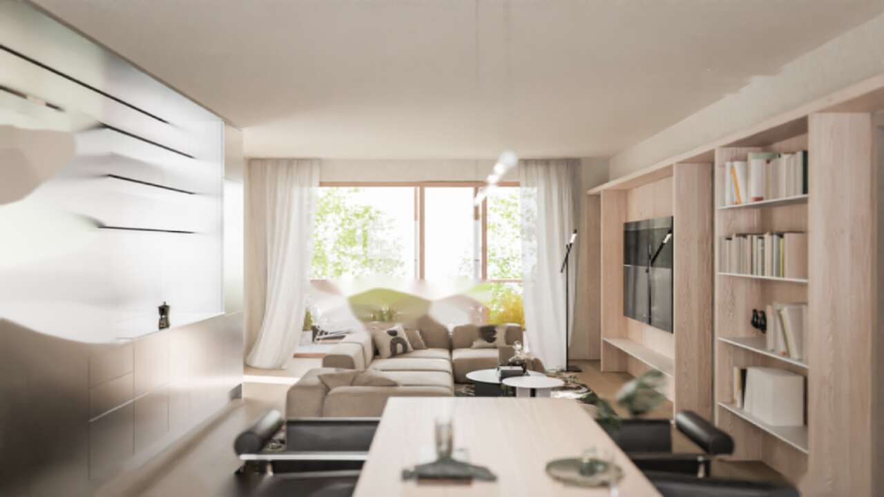 На пятом из девяти этажей нового здания в районе Нови Бежиград, Любляна, расположена современная двухкомнатная квартира площадью 88,75 м². Окончание строительства планируется на 2025 год, и жилье обещает стать примером гармонии между актуальным дизайном и функциональными решениями.