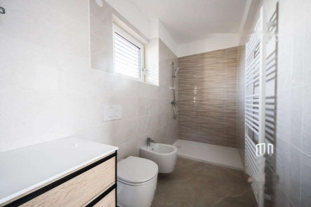 Дом продается в формате «под ключ», оборудованный всем необходимым: тепловым насосом, теплым полом, системой рекуперации воздуха, окнами с тройным остеклением, внешними встроенными жалюзи, входными дверями из алюминия и металлическими ограждениями на террасе. В ванных комнатах установлена высококлассная керамика и современная сантехника, а в других помещениях настелен качественный дубовый паркет. Два места предусмотрены для парковки.