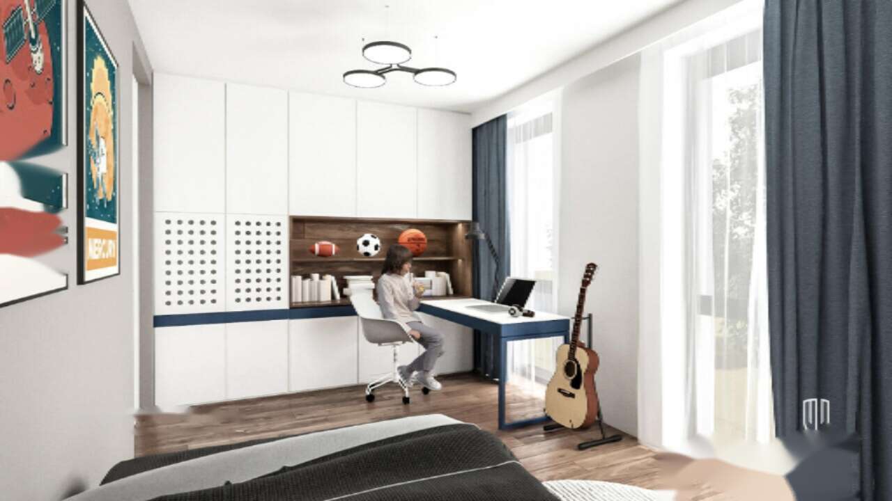 Первая изюминка дома — его рациональная планировка: первый этаж включает прихожую, техническое помещение, туалет, спальню/комнату, просторную гостиную с кухней и лестницу. На втором этаже расположены коридор с игровой зоной, две ванные комнаты, спальня с гардеробной и две детские комнаты, которые можно объединить в одно пространство, если это необходимо.