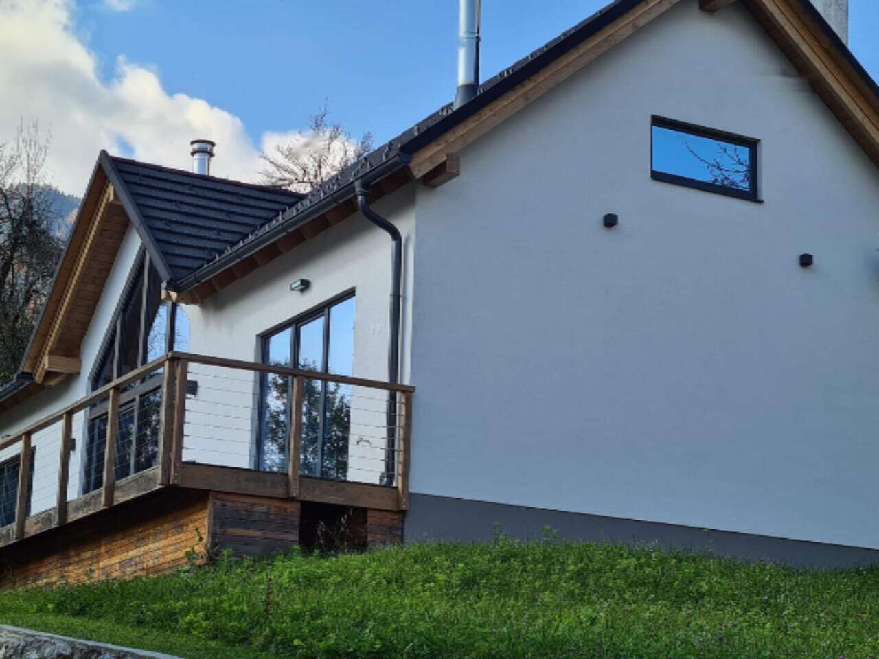 В доме высокие потолки и открытая планировка, что создаёт атмосферу простора и света. С террасы, откуда открывается захватывающий вид на горы в сторону Купленика, вы получаете уникальное эстетическое наслаждение .