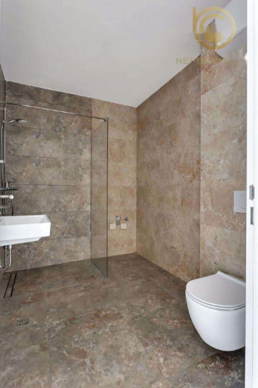 Жилое пространство размером 57,3 кв.м. объединяет на одном уровне кухню, столовую и гостиную, создавая просторную атмосферу. Основная спальня и две дополнительные комнаты (одна из которых может служить кабинетом) поддерживают баланс между комфортом и функциональностью. Ванная комната отличается изысканной керамикой и вместительным душем. Особое внимание уделено балкону (4,9 кв.м.) с современным лакированным стеклом и эпоксидной отделкой.