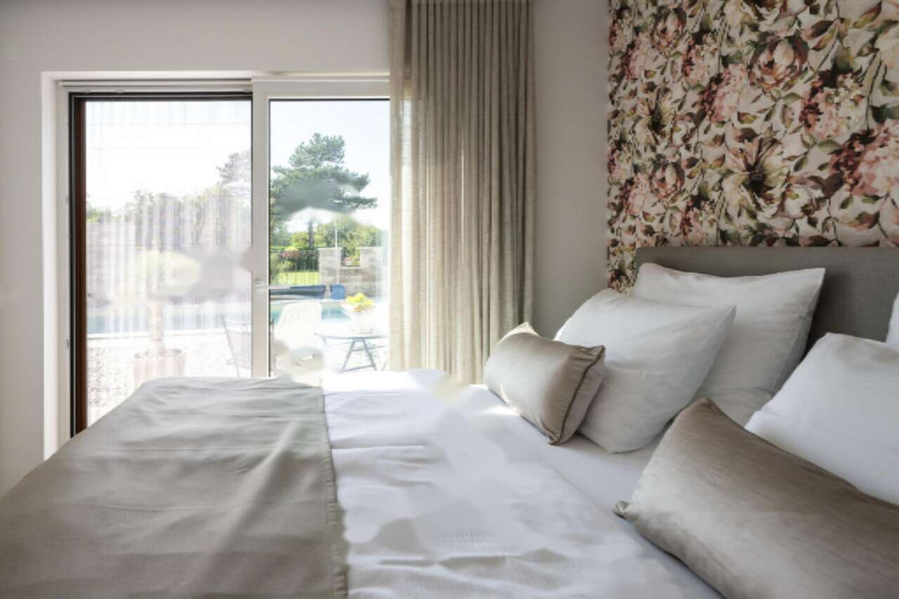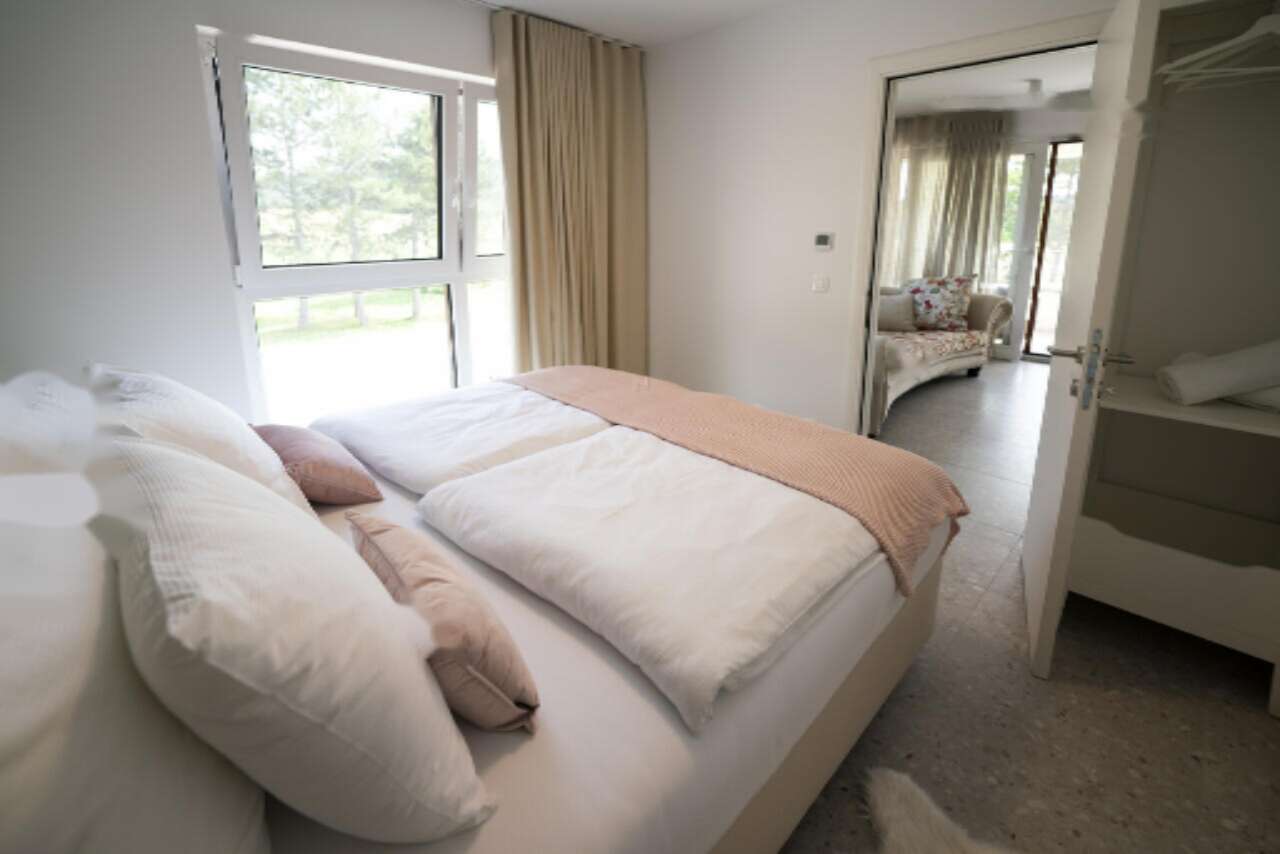 Жилая площадь составляет впечатляющие 214 м² и включает девять спален и шесть ванных комнат. Просторный интерьер дополняют балкон, терраса и атрий, создавая атмосферу для отдыха и релаксации на свежем воздухе. На общей территории есть такие удобства, как открытый бассейн и сауна, которые добавляют комфорта.