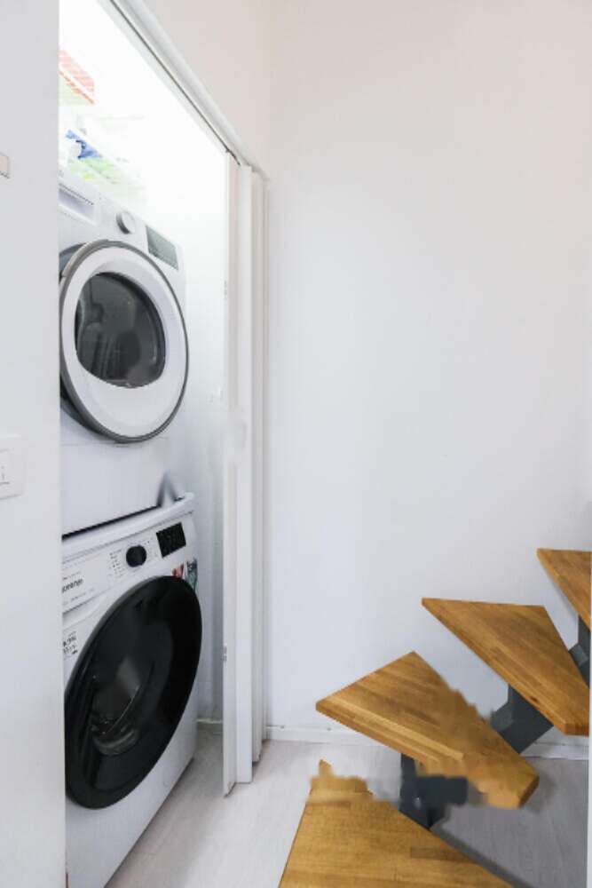 К числу основных достоинств этой недвижимости относится совершенно новая и современная обстановка, которая остается будущим владельцам. Обеденная зона, совмещенная с гостиной и кухней, занимает 30 м², а на галерее расположена спальня с рабочим пространством. В ванной комнате предусмотрены душевая кабина и туалет. Также жильцам доступны общая велопарковка.