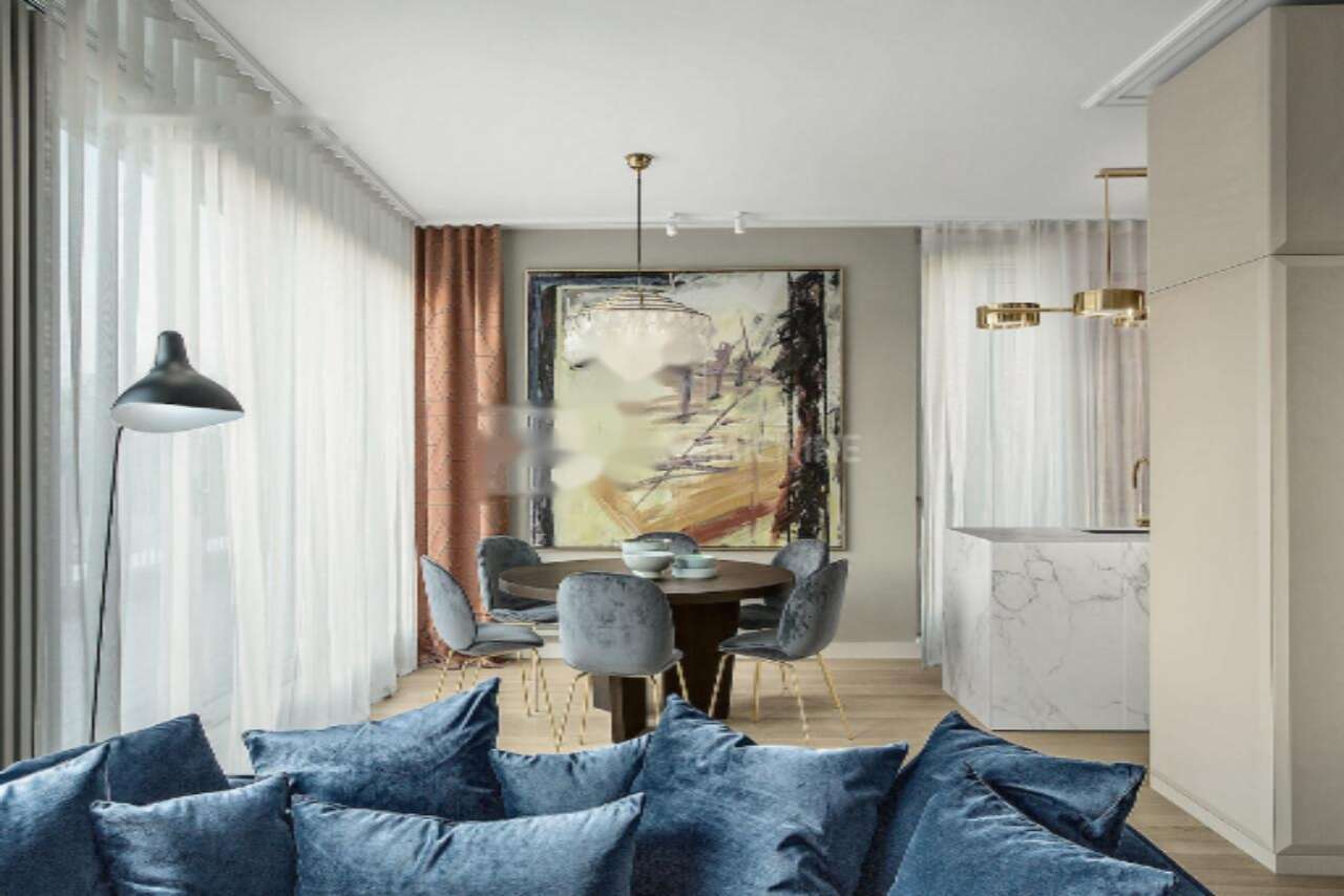Благодаря большим панорамным окнам в апартаментах всегда много естественного света, а высокие потолки придают пространству ощущение открытости и удобства. Общая площадь составляет 166,8 м².