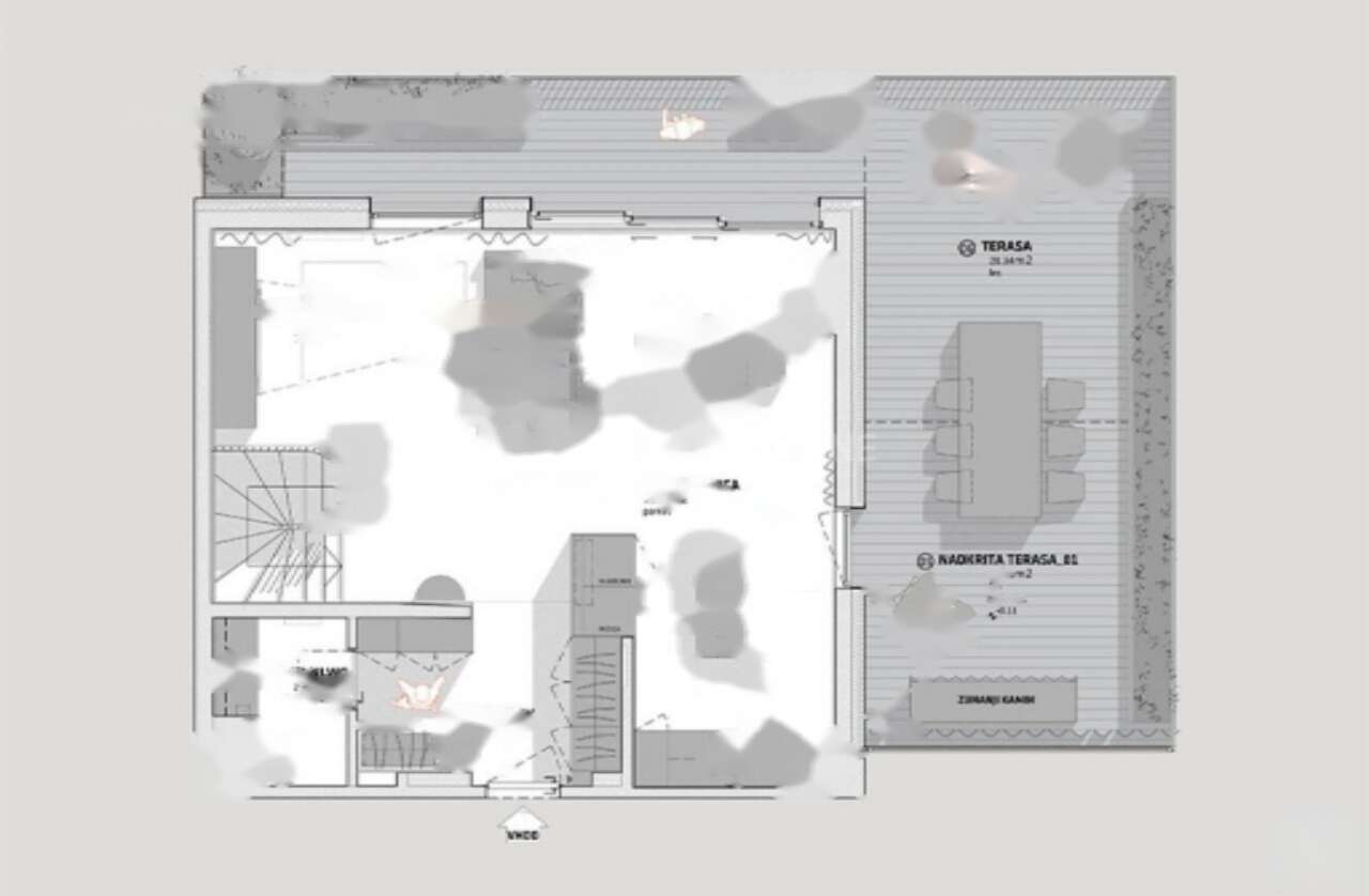 - Верхний уровень включает прихожую, гостиную, совмещённую с кухней и столовой зоной, из которой можно выйти на просторную террасу, идеальную для отдыха и приятных встреч, а также отдельный туалет.