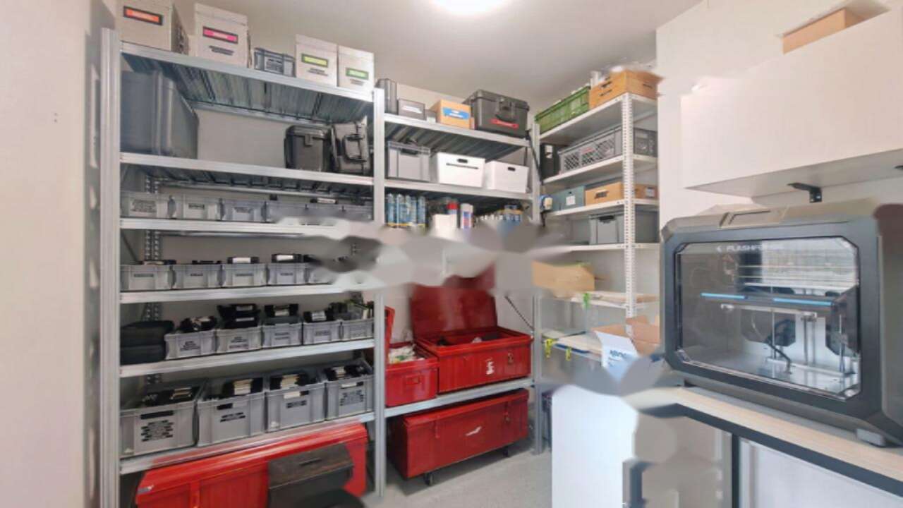 В здании установлены системы отопления на городском газоснабжении и солнечные панели мощностью 42 кВт. Цокольный этаж включает несколько складских зон, помещение с компрессорами, раздевалки, пространство, которое можно переоборудовать в санузел, а также котельную с газовым оборудованием. Здесь также находится просторный складской зал площадью примерно 312 м² с потолками высотой 5,8 м и двумя большими воротами размером 3х3 м.