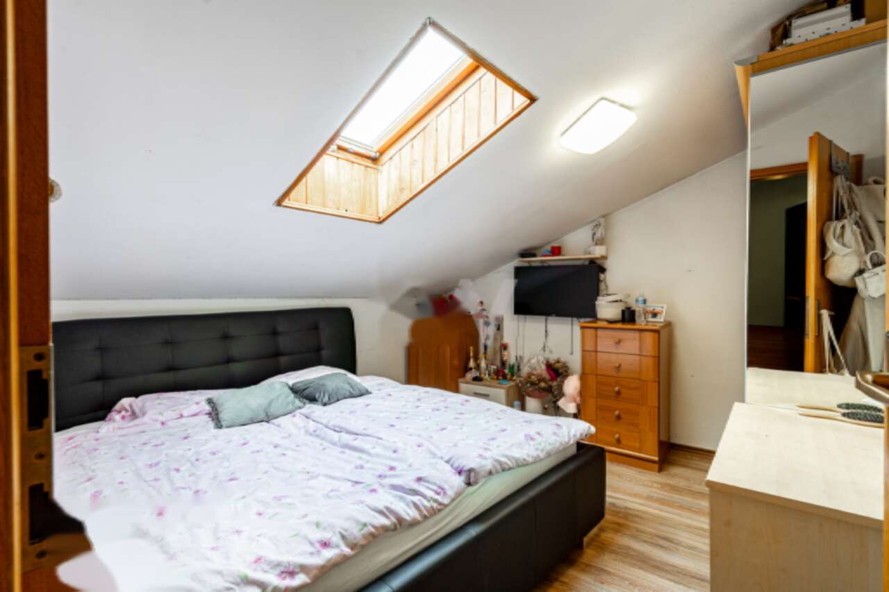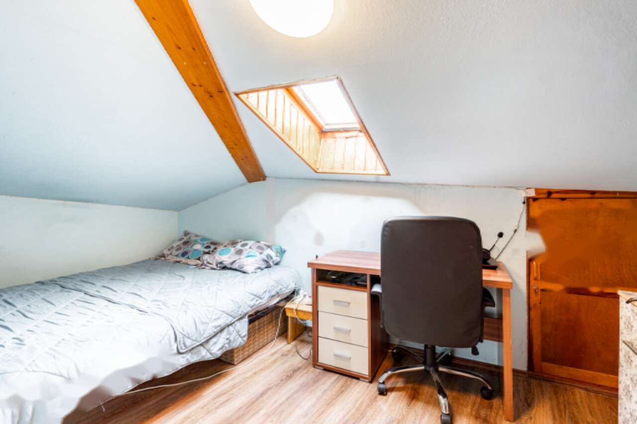 Интерьер квартиры, которая простирается на втором и третьем (мансардном) этажах, функционально продуман и изготовлен для комфортного проживания. На втором этаже вас встретит спальня с гардеробной, кладовая, внушительная ванная и гостиная, совмещенная с кухонной зоной. Кладовую легко можно переоборудовать в дополнительную спальную зону. На мансарде расположены две детские комнаты. На первом этаже находится отдельная студия, которую при желании можно сдавать арендаторам.