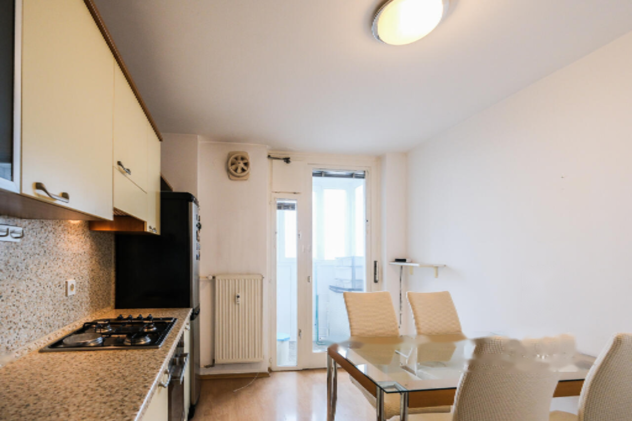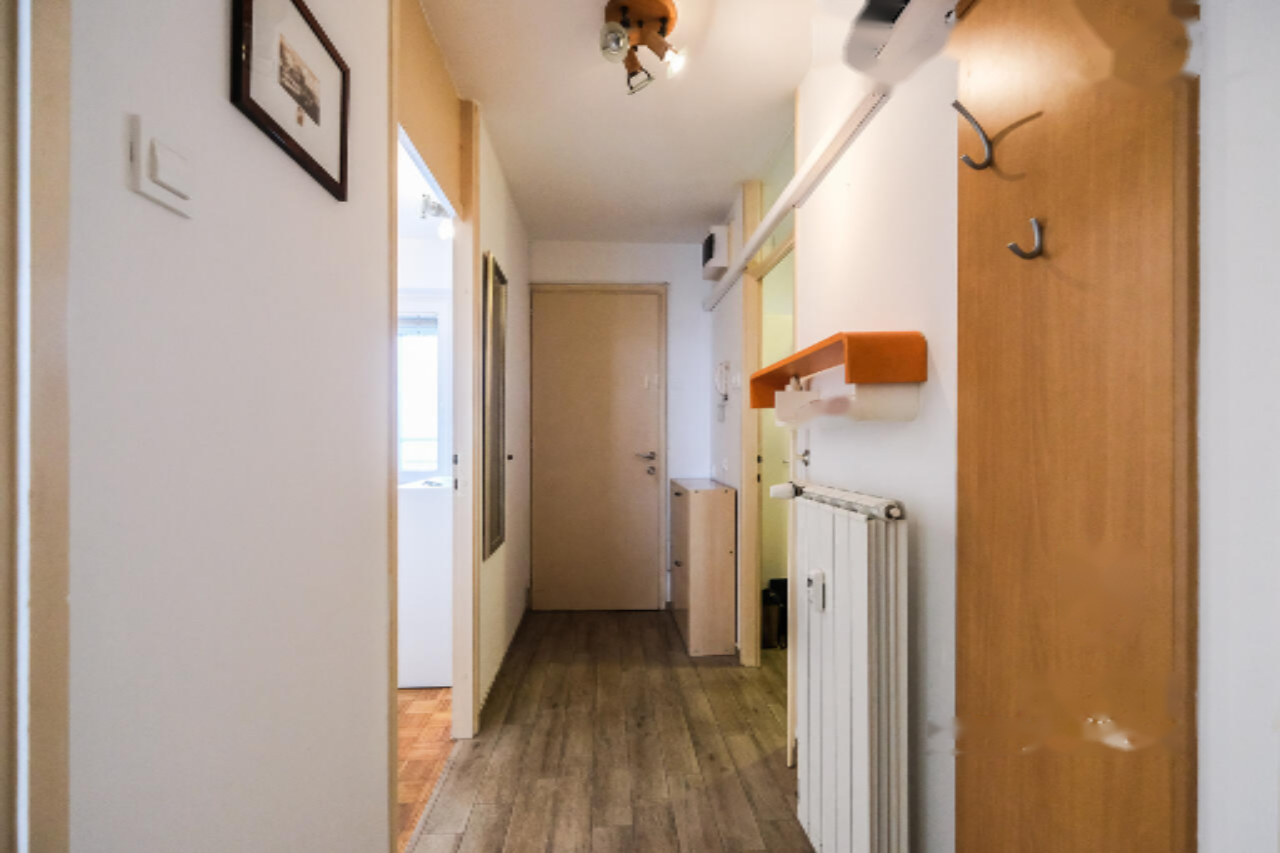 Продается уютная двухкомнатная квартира в районе Шишка, Любляна, занимая верхний этаж четырнадцатиэтажного здания. Площадь жилья составляет 47,1 м², включая 40,6 м² жилой зоны. Здание 1974 года постройки прошло частичную реновацию в 2016 году: были заменены окна, облагорожен балкон, обновлены ванная комната, крыша и фасад. Меблировка предусмотрена в стоимость квартиры.
