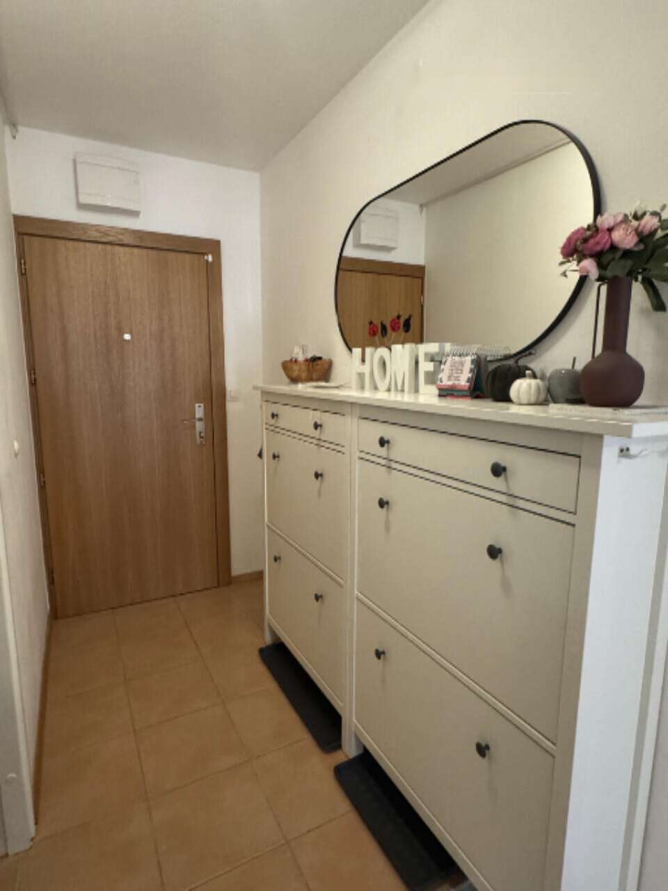 Жилая площадь квартиры составляет 68 кв.м., включая обширную гостиную, совмещенную с обеденной зоной и кухней, спальню с большим встроенным шкафом и небольшую комнату, идеально подходящую для офиса или детской. В квартире имеется одна ванная комната, отдельный туалет и два балкона: один — выходящий из гостиной, второй — маленький французский балкон из спальни.
