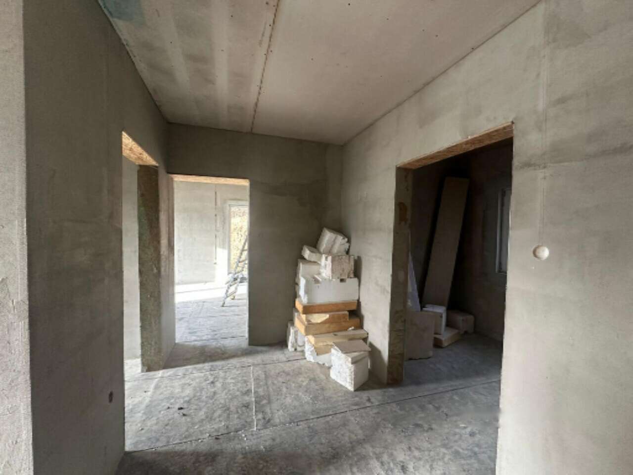 На живописном холме, утопающем в зелени и спокойствии, возвышается современная новостройка одноэтажного дома, возведённая в 2023 году в районе Крымель, Словения. Этот энергоэффективный дом всё ещё строится, позволяя новому владельцу оформить внутреннее пространство в соответствии с личными предпочтениями. Ожидаемые затраты на завершение составляют 30 000 евро.