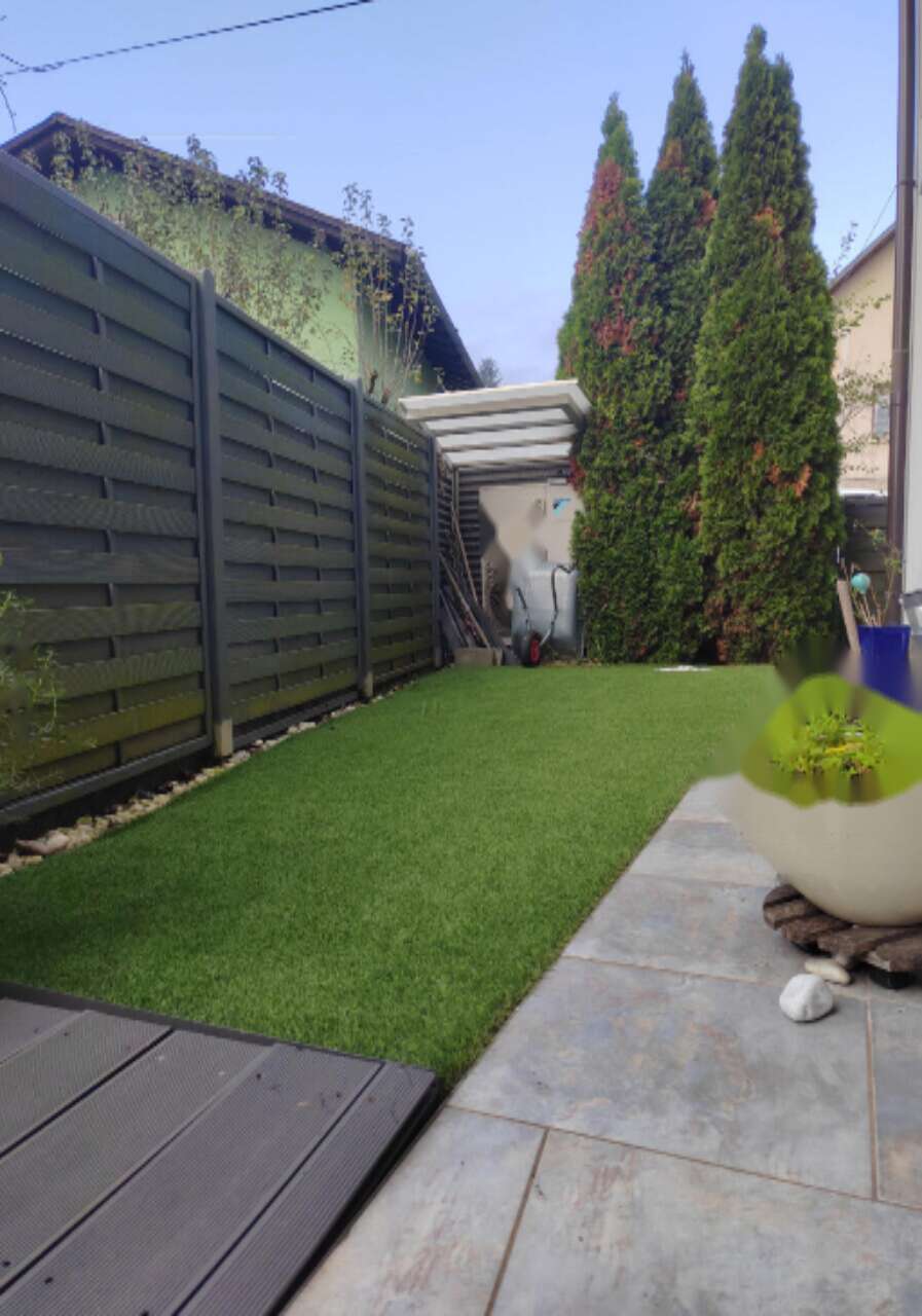 На участке площадью 388 м², который украшен зелеными насаждениями, декоративными кустарниками и яркими цветами, находятся сад и две большие террасы.