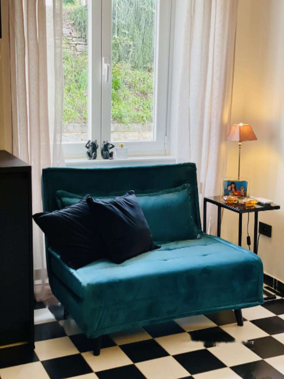 Внутреннее пространство состоит из прихожей, большой гостиной, совмещённой с современной кухней и обеденной зоной, двух уютных спален и ванной комнаты с туалетом. Установлена австрийская накопительная печь HAAS+SOHN и система кондиционирования, позволяющие поддерживать комфорт и свежесть. Квартира обставлена по индивидуальному заказу, с применением качественных материалов и подходящей мебели.