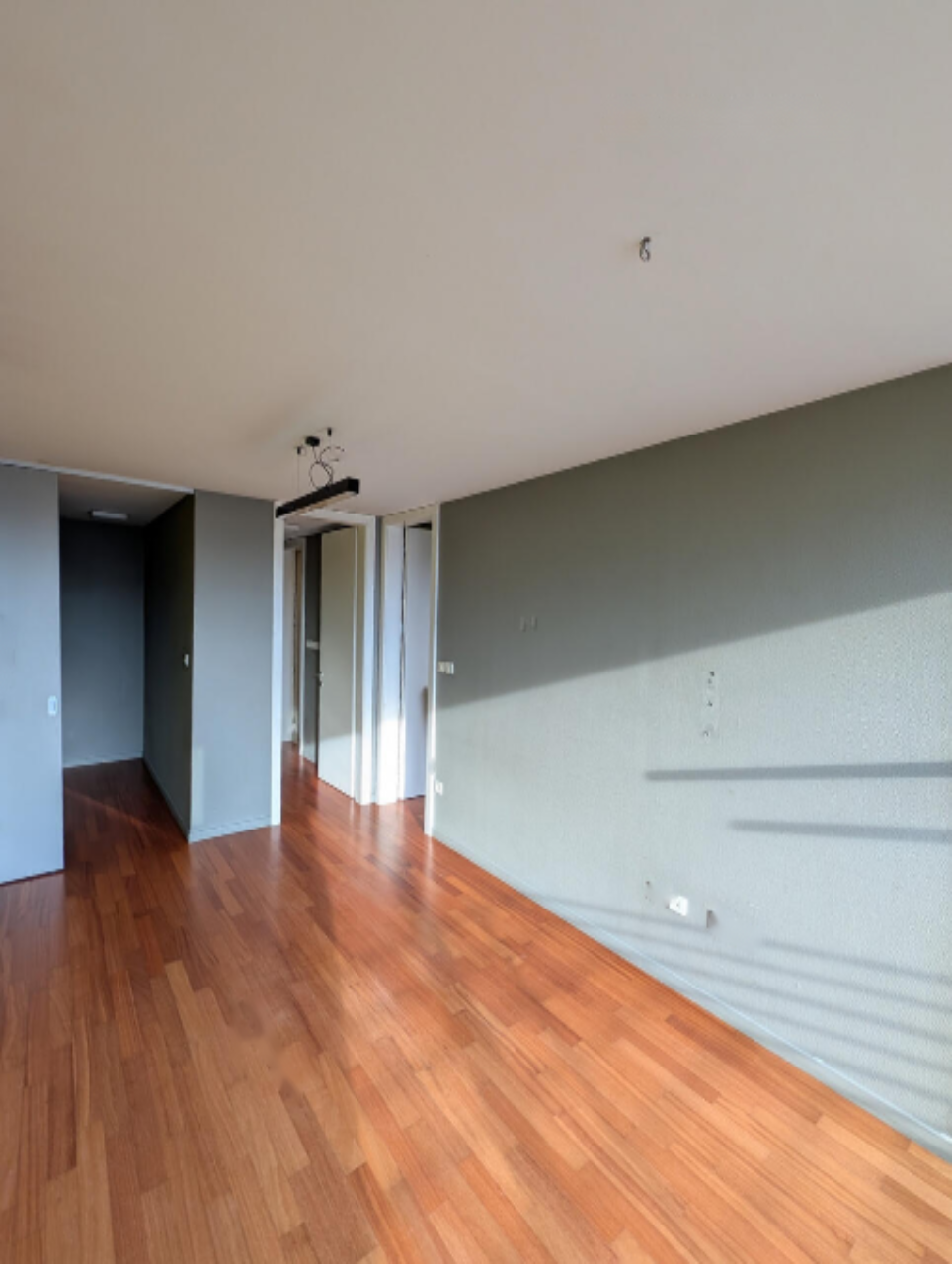 В квартире имеется 41 м² жилого пространства, включающего прихожую, отдельную спальную комнату, гостиную с кухней, и застеклённую лоджию в 3,5 м², с доступом из гостиной и спальни. В подвале дома расположена кладовка размером 5 м². Отопление обеспечивается городским газом, а также предусмотрена установка кондиционеров для большего комфорта. Для жильцов также имеются гараж и место для хранения велосипедов.