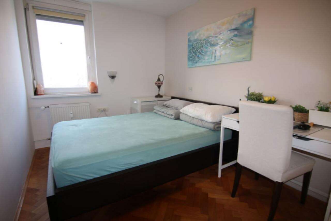 Из гостиной можно выйти на балкон площадью 5,2 м² с видом на Любляницу. К квартире прилагается кладовая размером 2,3 м². Жильё в превосходном состоянии благодаря недавнему ремонту. Оборудовано кондиционером и взломоустойчивыми дверьми. Мебель, включая новые бытовые приборы — стиральную, сушильную и посудомоечную машины, можно оставить по договоренности.