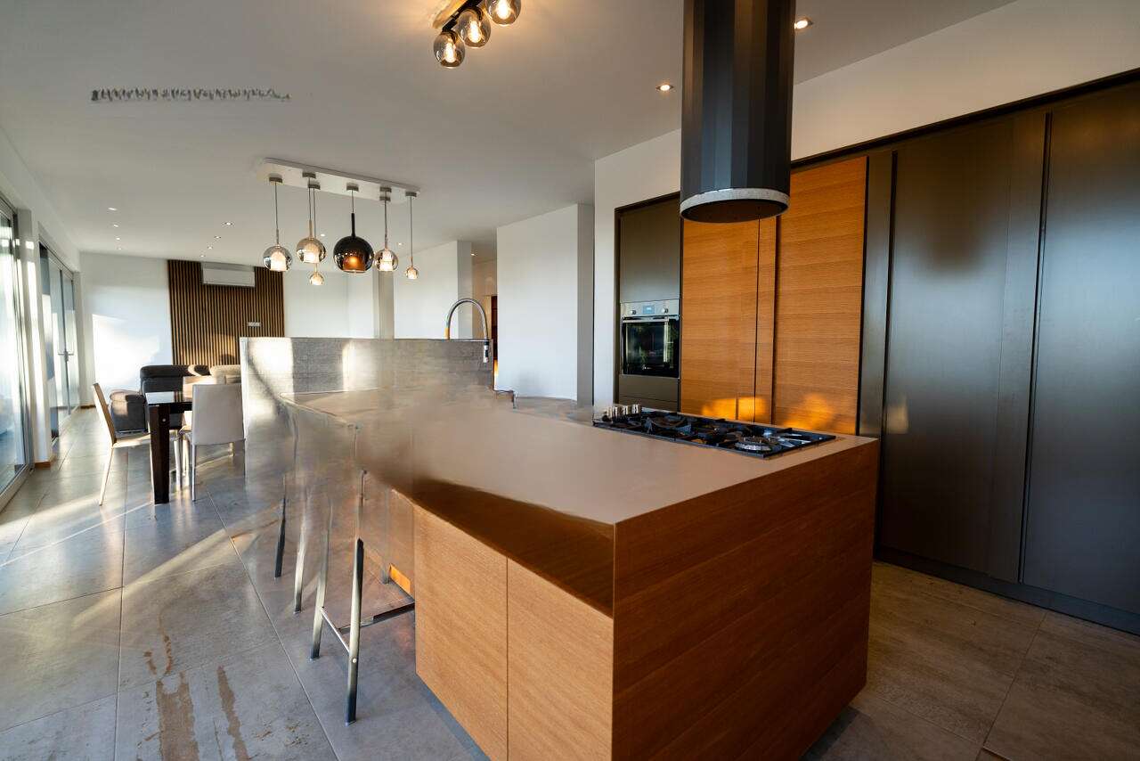 На трёх этажах, включая подвал и первый этаж, созданы условия для комфортного проживания с использованием передовых технологий. Утончённая гостиная, кухня, столовая, зона для отдыха и офис уютно располагаются на первом этаже, формируя атмосферу дружелюбия и комфорта. С террасы с биоклиматической перголой открывается живописный вид на тщательно ухоженный сад с бассейном. Второй этаж готов удивить двумя мастер-спальнями, каждая с собственной ванной комнатой, а также тремя дополнительными спальнями, общей ванной, сауной, джакузи и душем — здесь созданы все условия для релаксации и наслаждения великолепными видами.