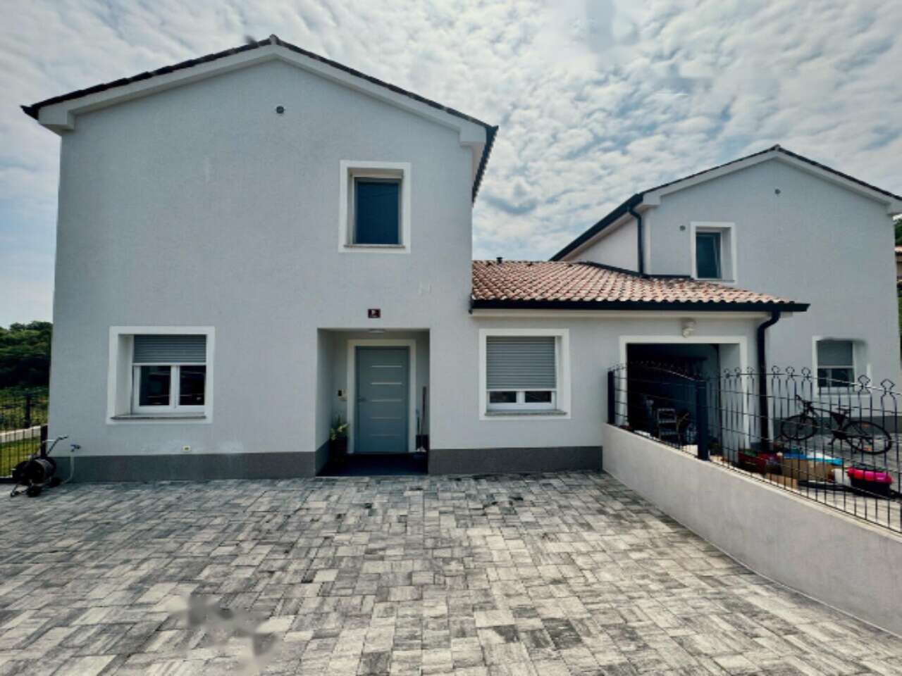 На продажу выставлен стильный двухэтажный дом, расположенный в живописной местности Гриньян, Копер. Дом, возведенный в 2022 году, удачно сочетает архитектурную изысканность с комфортом щедрых внутренних пространств. Его площадь равна 128,5 м², а прилегающий земельный участок занимает 351 м².