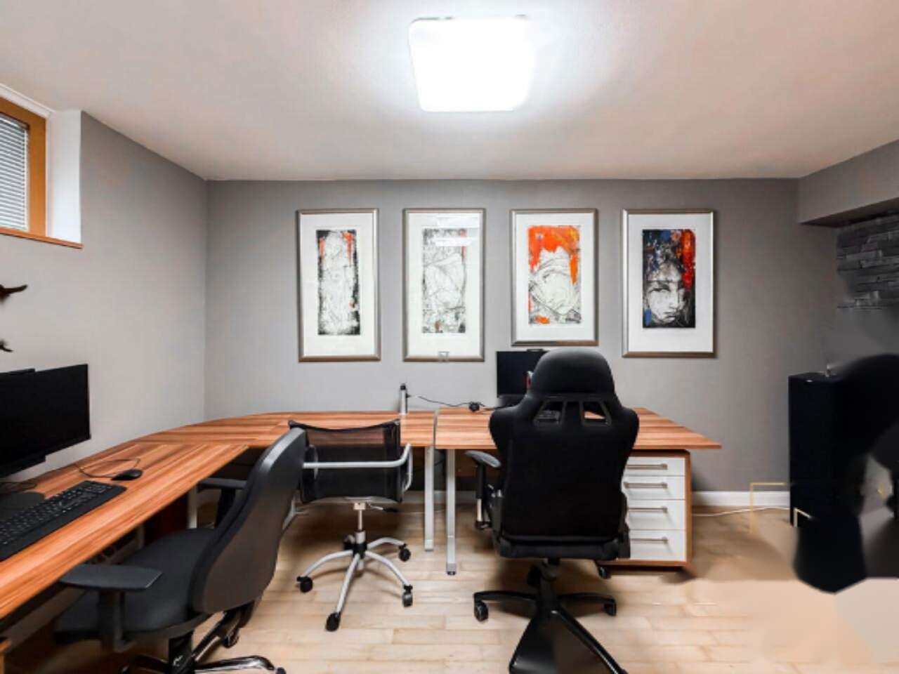 Первый этаж отведён под открытую гостиную, объединённую с кухней и столовой, террасу и гостевую ванную комнату. Второй этаж примечателен двумя вместительными спальнями, компьютерной комнатой, ванной и дополнительной террасой.