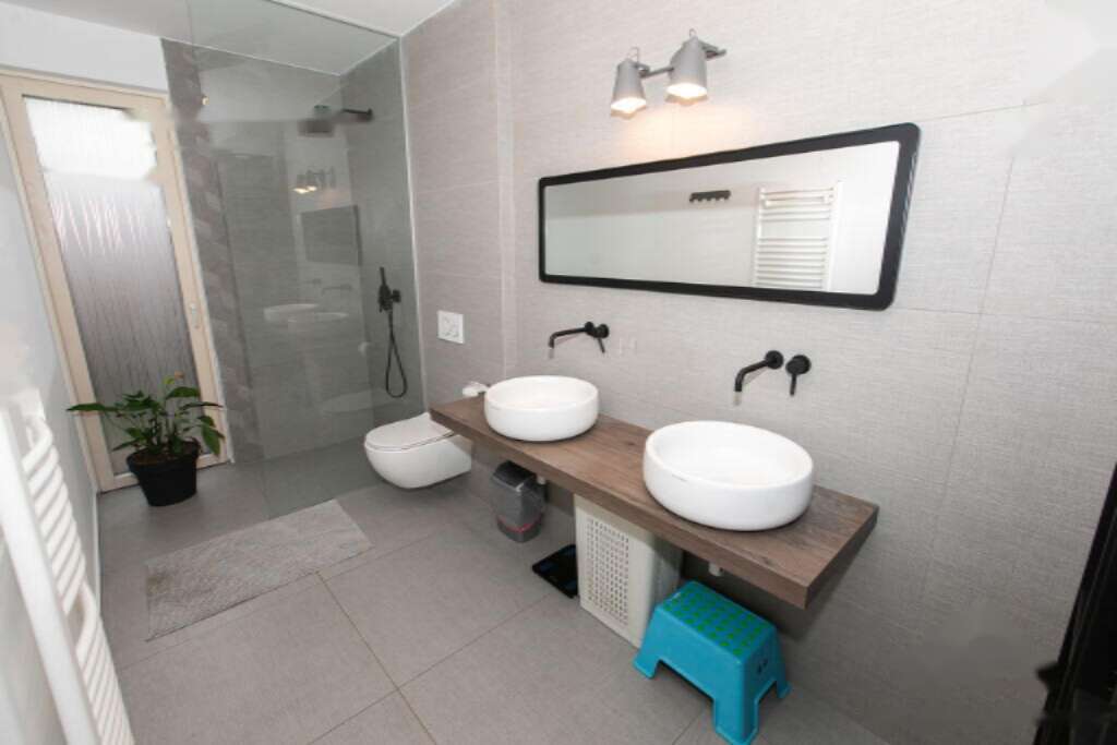 Высококлассные материалы, такие как дубовый паркет и качественная керамика вместе с сантехникой от Flaminia, оформляют интерьеры, а террасы украшены тропической древесиной Cumaru.