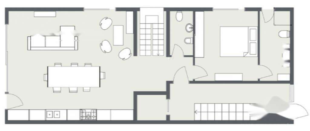 Здесь вам гарантирован максимум комфорта и уединения. Просторная гостиная, соединенная с кухней и столовой, вмещает четыре спальни, две ванные и отдельный туалет, создавая идеальные условия для семейной жизни. Насладитесь свежим воздухом и покоем на большой террасе площадью 28 м² и в саду, занимающем 232 м².