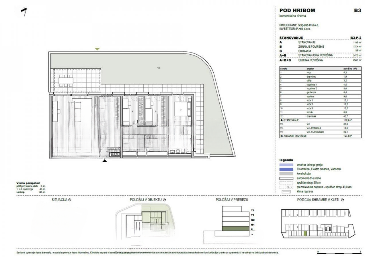 Предлагается обширная квартира площадью 253,1 кв.м. в одном из самых престижных районов Любляны – в жилом комплексе «Под Хрибом». Этот новейший проект предоставляет редкую возможность жизни в современном архитектурном ансамбле, утопающем в природных красотах .